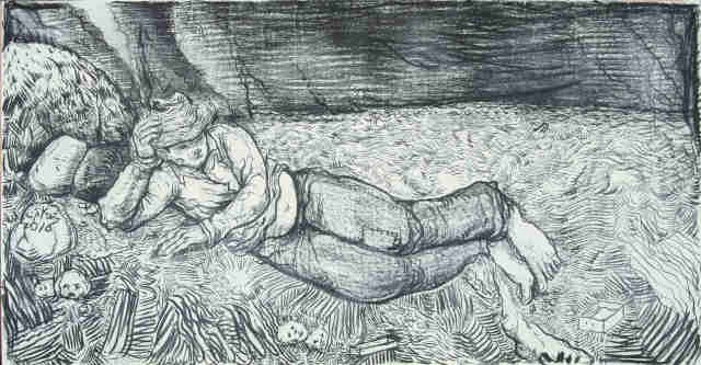 观众:农夫与麦浪给人开阔的视野,丰收的季节,在前面加一个“睡着的”,表现了怎样的情绪和思想?