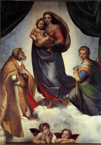 作品《西斯廷圣母》,拉斐尔,板上油画,264.16cm×195.58cm