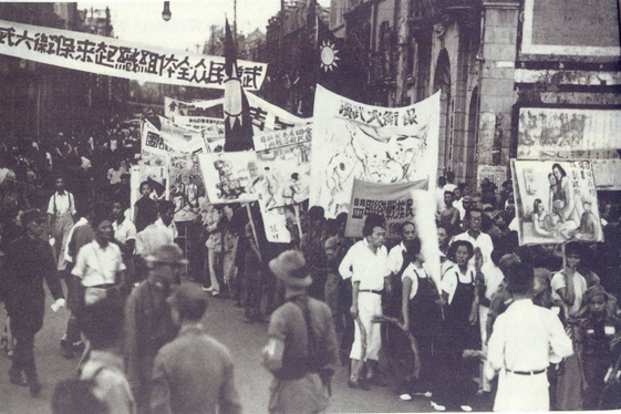 1938年武汉群众举行“五一”游行示威(武汉八路军办事处提供)