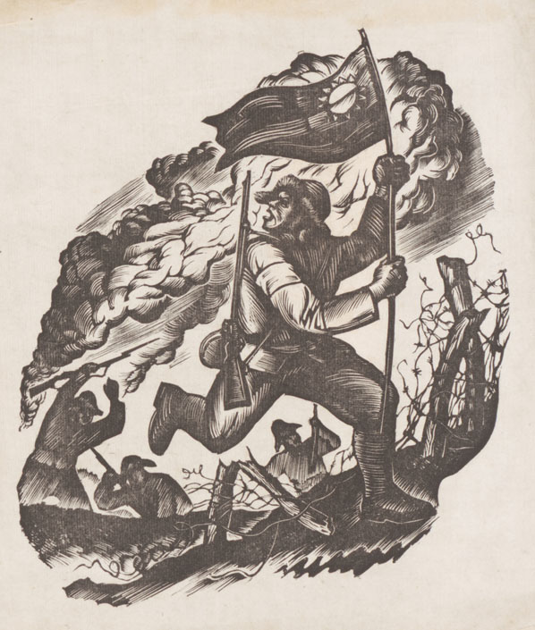《旗手》,李桦 作,木刻,发表在《新华日报》1938年1月13日第四版,又刊用作《七月》第3卷第1期封面