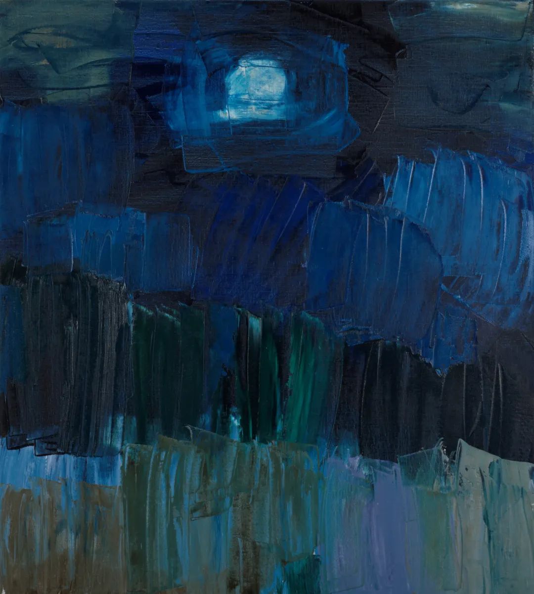 当一个画家,一个抽象画家,能够如此专心致意地在保持在笔触的书写上,一根线条,一块色彩,横竖上下,内外左右,去打开画面的空间,这就进入了纯粹的内在性,让颜色之间的关系,形成音乐式的赋格,相互呼应的结晶,他的绘画就得到了艺术的回赠,而这只有沉浸在绘画之中并且得到大美眷顾的画家,才有如此这样饱满、深情与音乐的结晶。