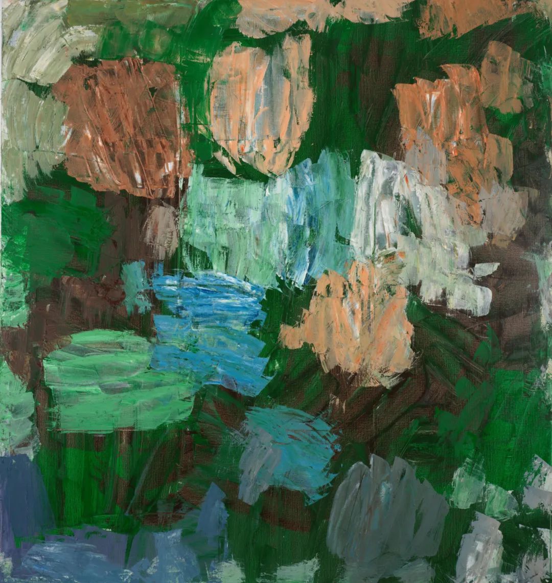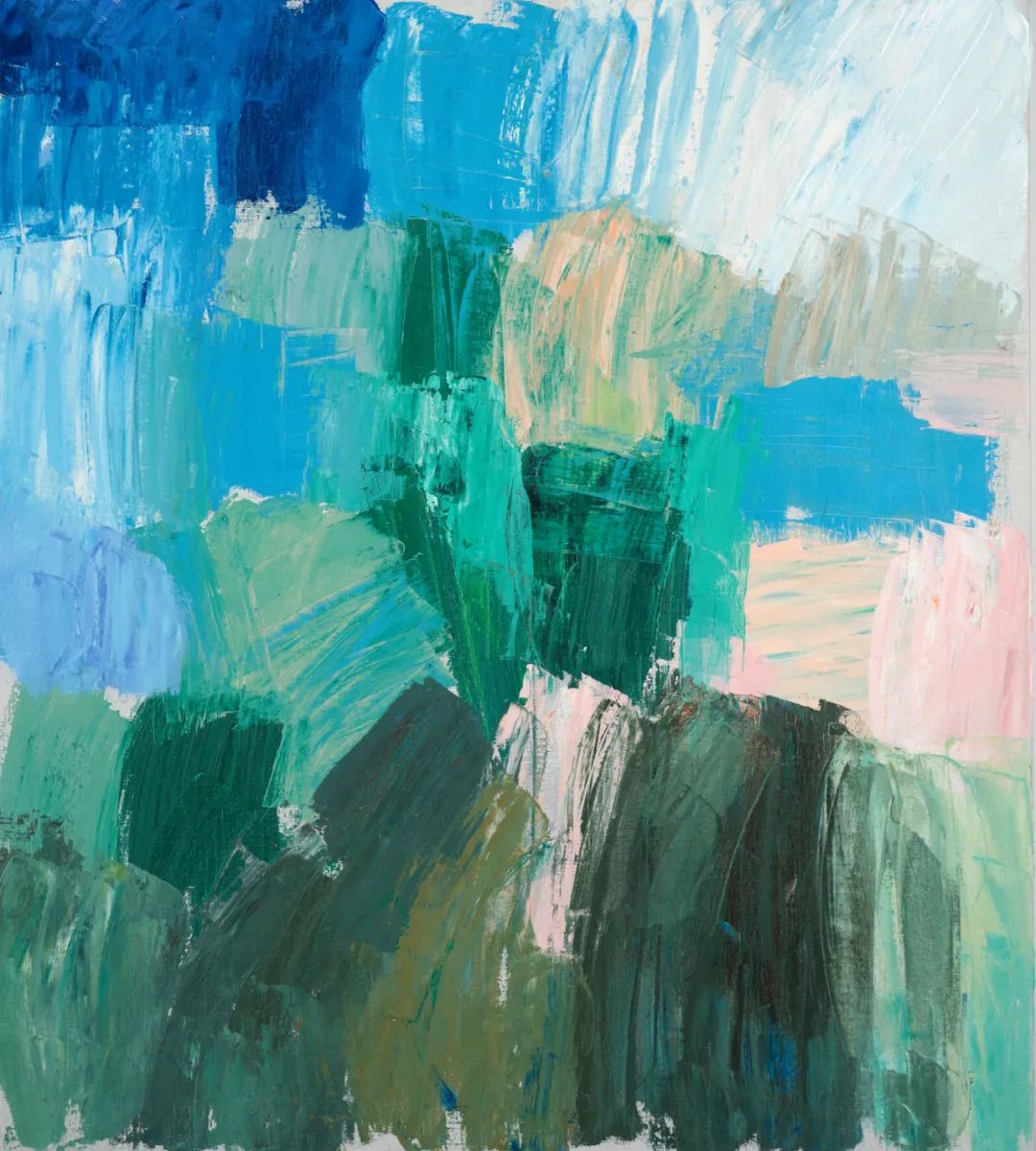 李鹏在画这些新作时,这些笔触,看似抽象,但其实都带有某处的风景,带有特定的情绪,因此隐约可以看出那些背景处的氤氲气氛,带有挣扎的意外痉挛,阴郁的暗绿与明亮的金色,有时候还带有不确定的迷茫,好似罗斯科在绘画突破期的汤状。这些笔触一个个基本上保持独立,但在相互接近中,打开画面的凸凹起伏以及内在深度。而一旦信念坚定,玫瑰色的灿烂笔触似乎就自然开放,荡漾着赋格的欢唱回旋,绘画竟然可以传达内心的喜悦,可以成为生命昂扬与欢愉的见证。