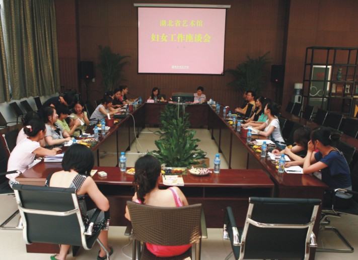 2009年6月22日下午,湖北美术馆妇委会组织召开了妇女工作座谈会。会议诚邀省文化厅机关党委副书记兼工会主任赵令珍、副主任科员孙琴进行现场讲座,对我馆妇女工作具体指导。全馆女职工21人参加会议。党支部书记李和清亲临座谈会向全馆女同胞提出了新的要求和希望。