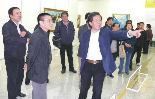 中国最高级别美术展览--第十一届全国美术作品展(油画部分)将于2009年9月在湖北美术馆隆重展出,为保证本次展览各项筹备工作顺利进行,2009年4月10日上午,中国美术家协会秘书长刘健、展览部主任杜军、展览部编审孙宁及湖北省文联副主席李宁、湖北省美术家协会秘书长徐建等领导一行对我馆硬件设施和管理状况进行了全面考察。傅中望馆长、李和清书记及各部门主任陪同检查团先后对我馆10个展厅、音乐报告厅及艺术中心等设施进行了细致观摩,并参观了正在展出的《长风万里西部情-中国美术馆馆藏精品展》、《三老万象-张肇铭、王霞宙、张振铎百年艺术纪念展》、《青萍残影-李青萍艺术展》三个展览。