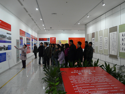 会后,团支部组织团员们在美术馆1号展厅——“铁的新四军——大型图片暨书画展”展厅,参加了“弘扬新四军铁军精神”的学习活动,并邀请美术馆党支部书记李和清同志、党支部组织委员张跃平同志参加指导。