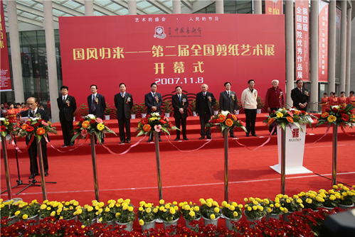 2007年11月8日上午,“国风归来——第二届全国剪纸艺术展”在湖北美术馆隆重开幕。出席开幕式的有中共湖北省委书记、省长罗清泉,中华民族文化促进会副主席金坚范,中共湖北省常委、宣传部部长张昌尔,湖北省政府副省长李春明,湖北省政协副主席王少阶,湖北省政府秘书长段文一,湖北省政府副秘书长张达华,湖北省文化厅厅长杜建国,湖北省中华民族文化促进会主席周韶华等领导、专家;此外,还有美术馆、美术馆、文化馆、民间文化团体等相关单位参加了开幕式。