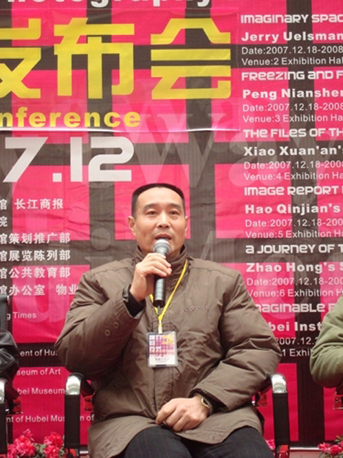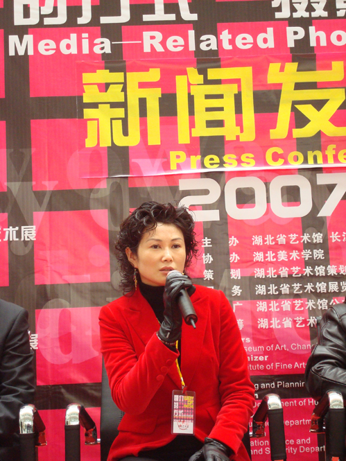湖北美术馆于2007年12月17日下午在美术馆一楼大厅举行了“媒介的方式——摄影艺术系列展”新闻发布会,与会者有湖北美术馆馆长傅中望、副馆长李和清、策划推广部主任朗雪波,四位参展艺术家彭年生、肖萱安、郝勤建、赵红以及20家湖北省内媒体记者。