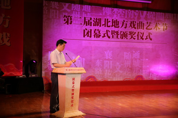 闭幕式由省文化厅党组成员、副厅长严荣利主持。省政府副省长郭生练出席闭幕式,并为优秀剧目奖和优秀演出奖获奖代表颁奖。省政府副秘书长黄国雄,省委宣传部常务副部长杨万贵,省文化厅党组书记、厅长雷文洁等领导出席闭幕式并为获奖代表颁奖。