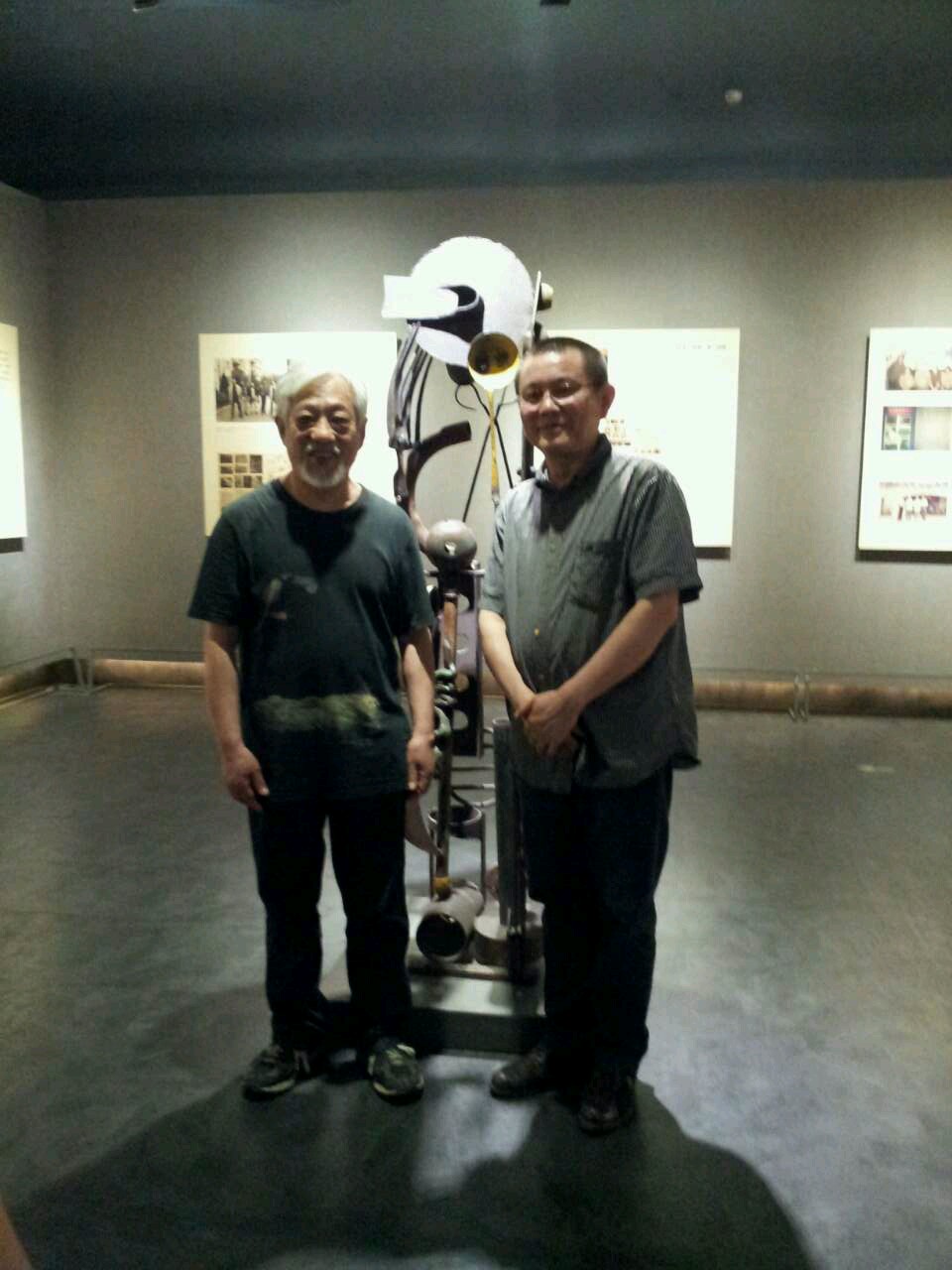 “当代艺术教父”栗宪庭(左)与湖北美术馆馆长傅中望(右)合影留念