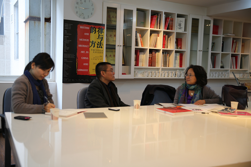 朱翰芳与美术馆馆长傅中望正在洽谈