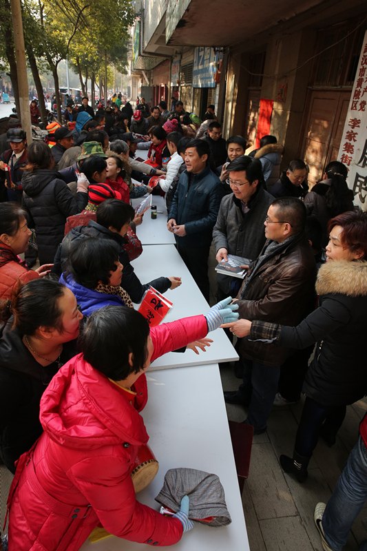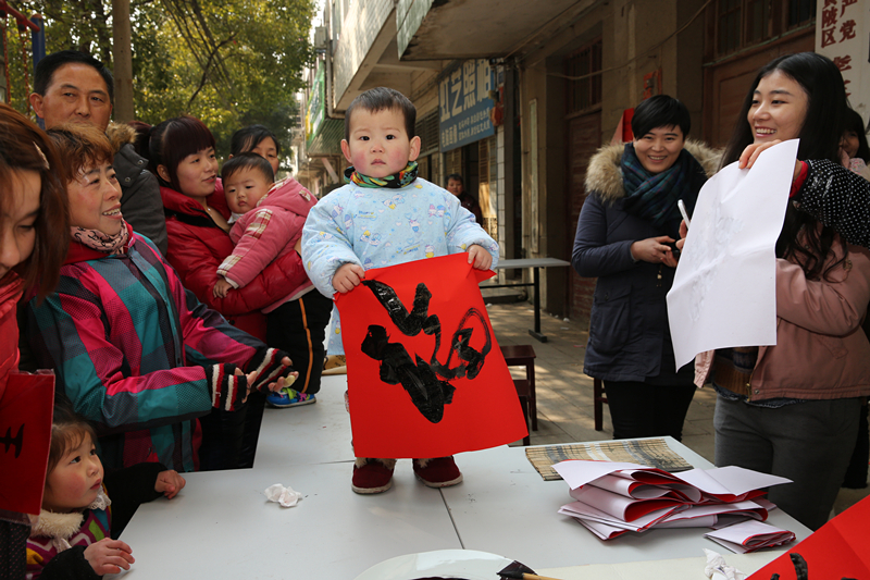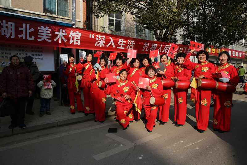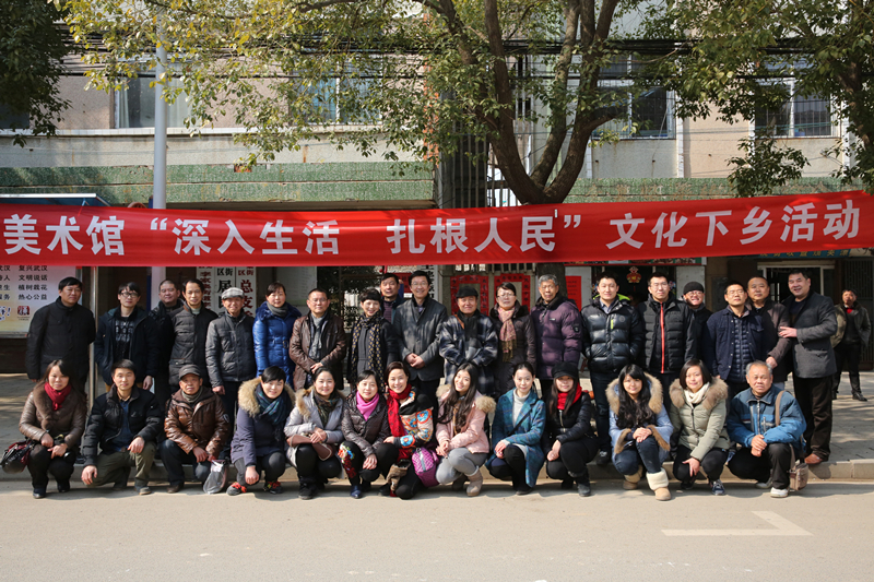 为了深入贯彻落实习总书记文艺工作座谈会重要讲话精神,宣传弘扬社会主义核心价值观,丰富充实百姓的精神文化生活,让群众享受优秀的文化成果,按照省委省政府和省文化厅要求,湖北美术馆将“深入生活、扎根人民”活动与“我们的中国梦——文化进万家”活动结合起来,与黄陂区李集镇文化站“结对子”,于2015年2月5日深入黄陂区李集街李集社区开展“五送”活动,即送春联,写春联,送书籍,送雕塑,送素描,为当地群众送去了一道丰盛的文化大餐。