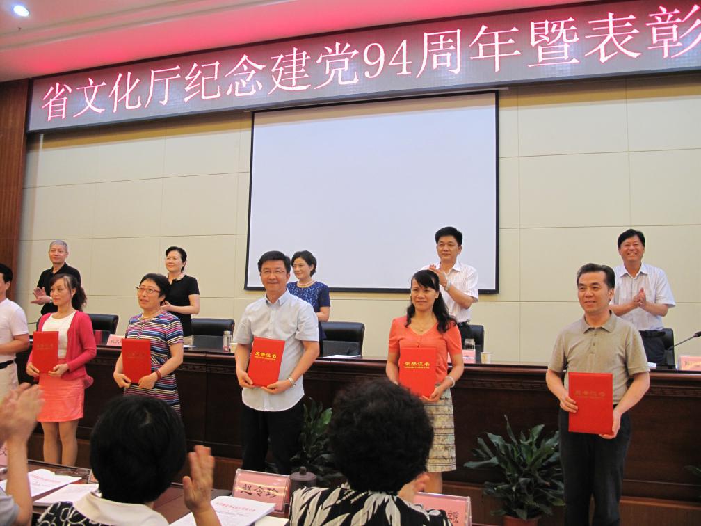 2015年6月19日下午,湖北省文化厅举办“庆祝建党94周年暨表彰大会”。省文化厅党组表彰了厅系统18个“红旗党支部”和50名优秀共产党员,传达了省纪委有关文件,举行了厅系统新党员宣誓、老党员重温入党誓词等教育活动。会上,湖北美术馆党支部被授予2014—2015年度厅系统“红旗党支部”荣誉称号,策划部主任夏梓和学术部主任胡莺被评为厅系统“优秀共产党员”,典藏部胡扬被评为省直机关“优秀共青团员”。