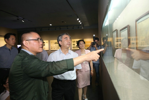 梁部长一行参观“百年纵横——湖北20世纪美术文献展”