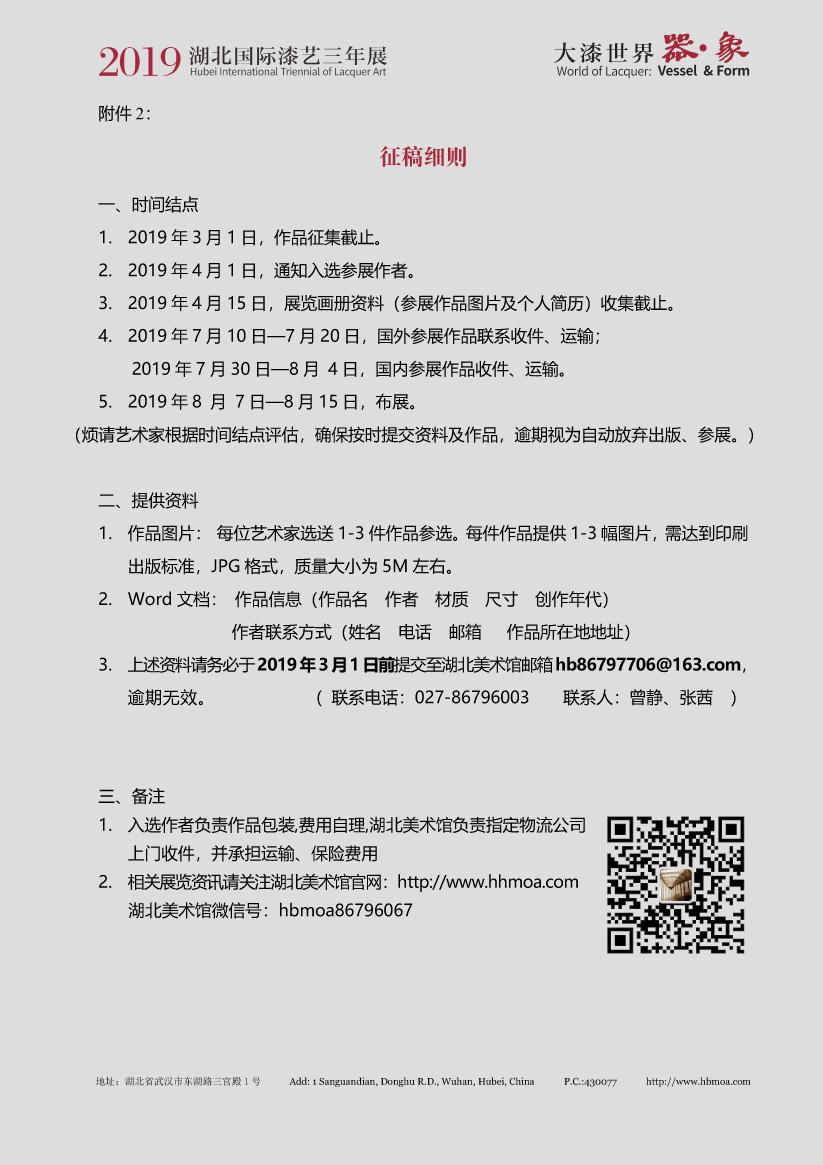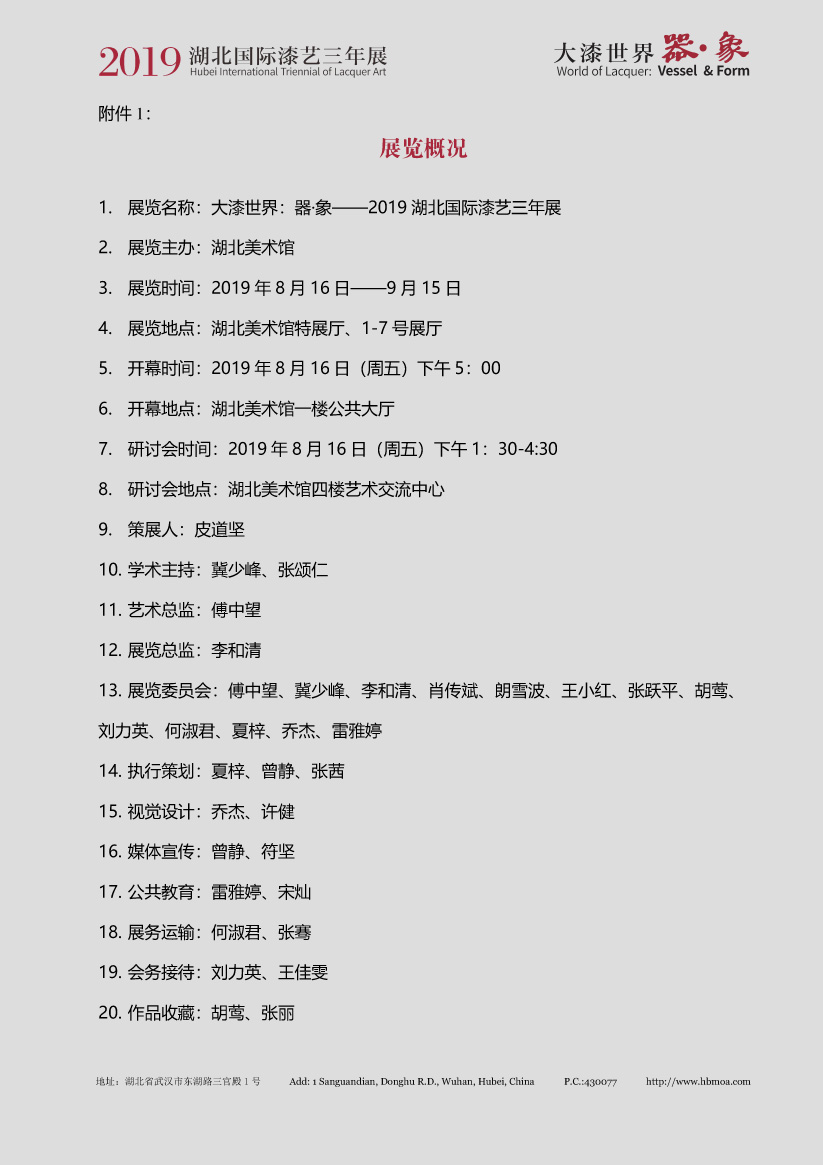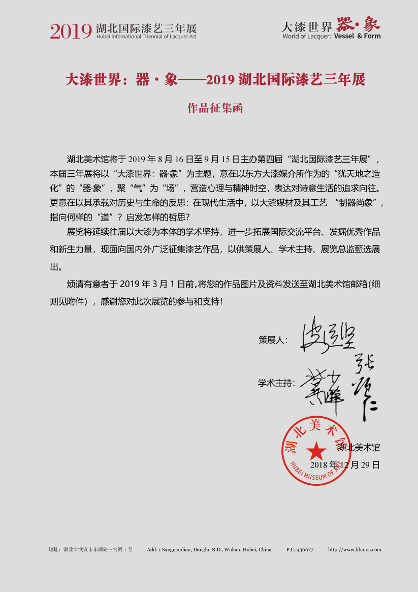 "大漆世界:器·象——2019湖北国际漆艺三年展"作品征集函