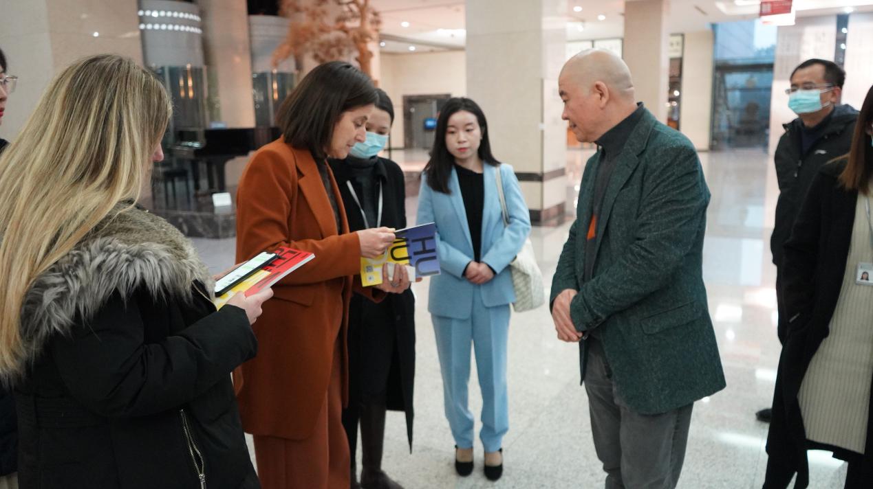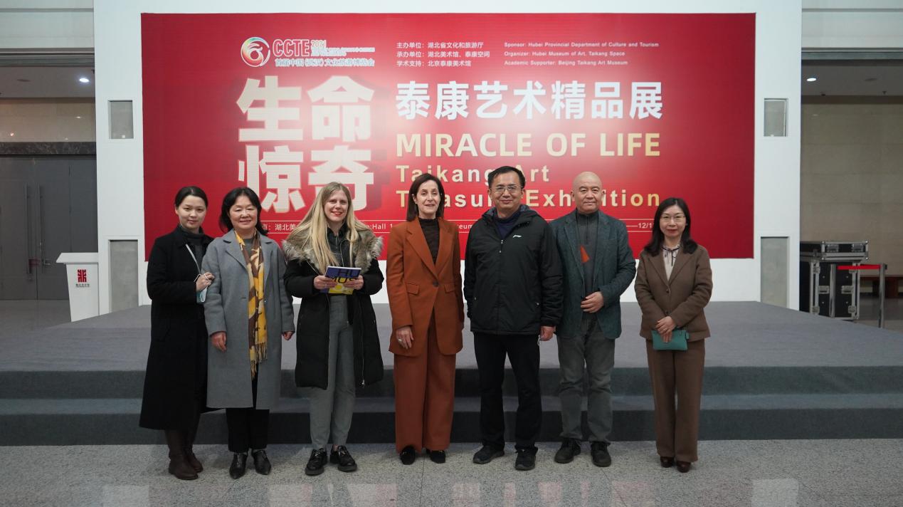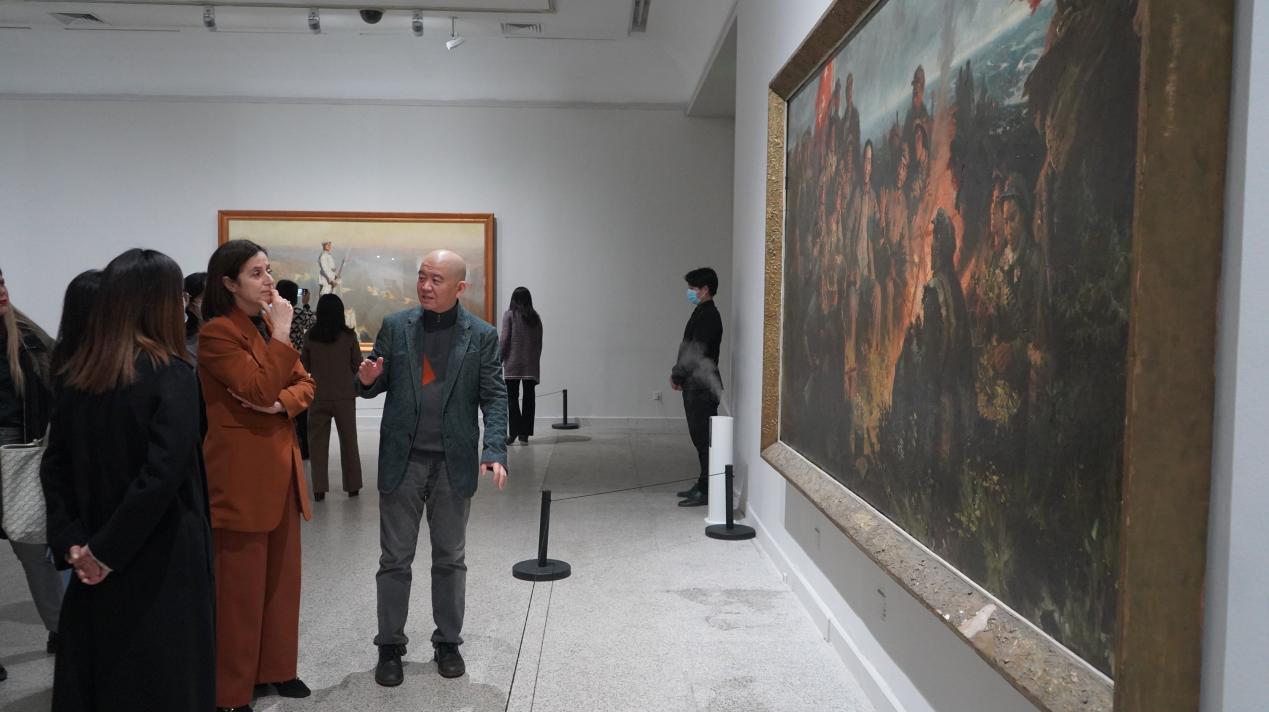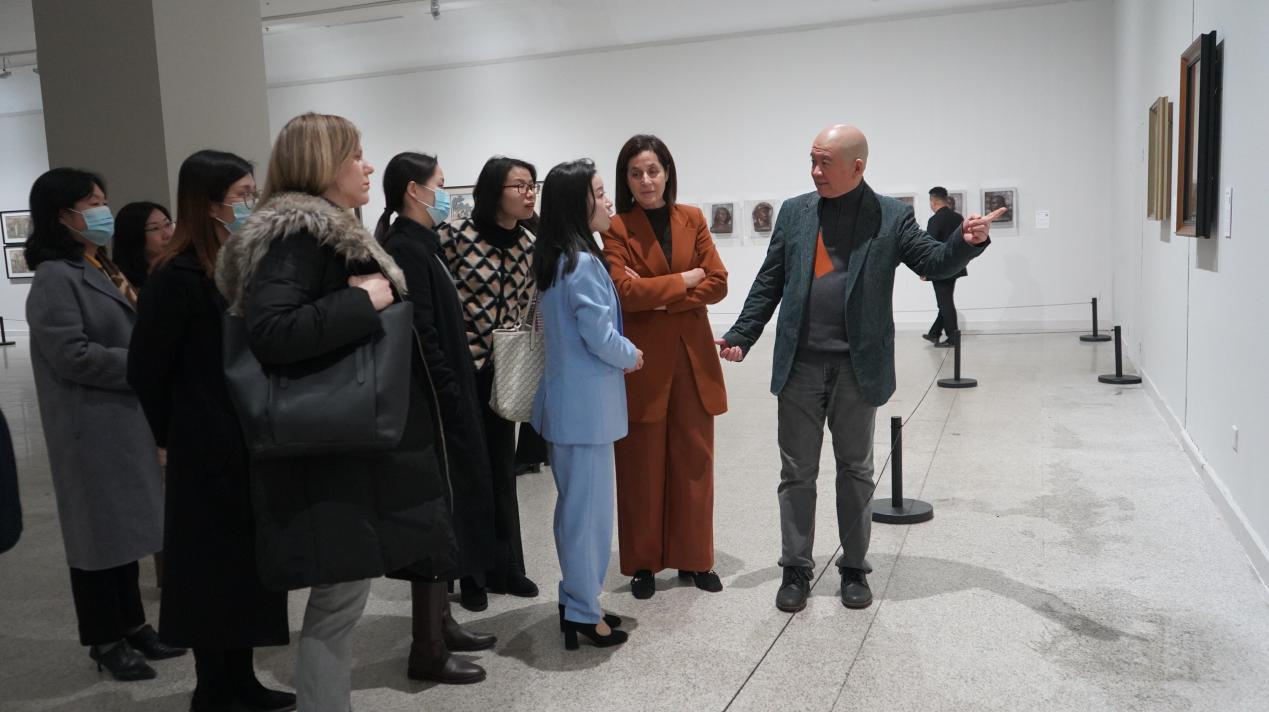 ▲湖北美术馆馆长冀少峰(右一)为潘绮瑞(右二)大使一行导览