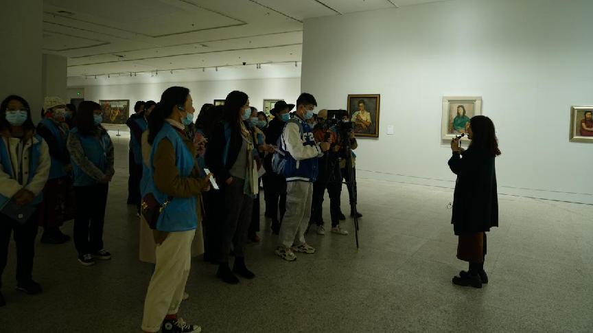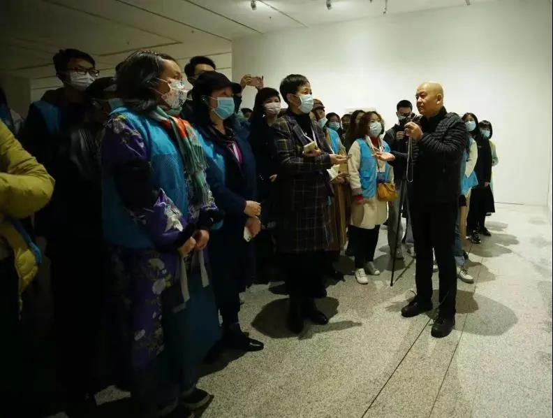 ▲2021年12月4日,湖北美术馆“国际志愿者日”活动期间,湖北美术馆馆长冀少峰为志愿者团队导览