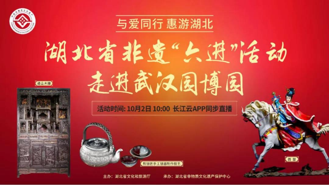 10月2日,由湖北省文化和旅游厅主办,湖北省非物质文化遗产保护中心承办的“与爱同行 惠游湖北”湖北省非遗“六进”活动第二场在武汉园博园汉口里举行。