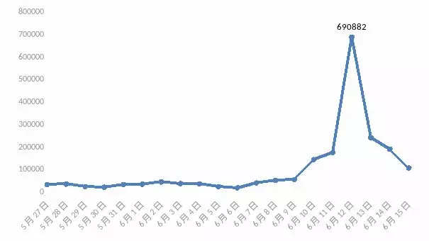 根据舆情传播走势来看,5月27日至6月9日,有关“遗产日”信息量呈现轻微浮动,但走势整体保持平稳,各传播渠道内容主要围绕活动预热展开。6月10日-6月12日,信息量呈现迅猛攀升态势,并于6月12日活动当天达到峰值。在监测阶段内,日均信息量维持在10.3万条左右。