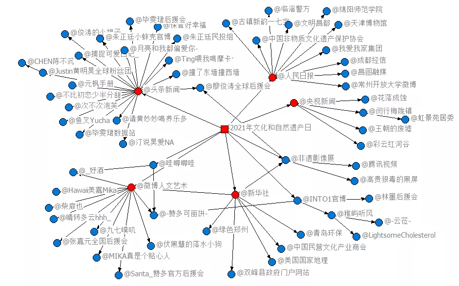 从传播路径看,人民日报、央视新闻、新华社等主流媒体在本次舆情传播中担当主力军,充分发挥媒体影响力,带动各级政务机构、高校组织、传媒行业等官博广泛参与其中。头条新闻、非遗影像展、微博人文艺术等蓝V账号活跃发文宣推,引领信息传播。此外,明星效应助推社交平台非遗话题宣传,进一步扩大信息传播覆盖面及影响力。