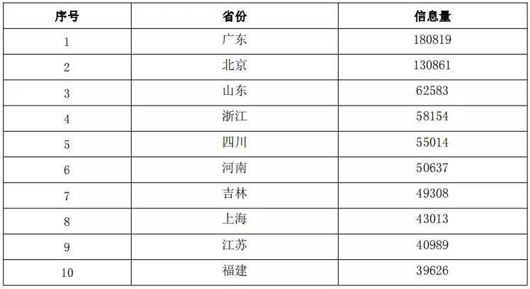 从舆情信息地域分布图来看,全国范围内对“文化和自然遗产日”的关注度排名呈块状分布,东南沿海以及中部省份关注度高于西北地区,广东、北京、山东三省市关注度位居全国前三位。