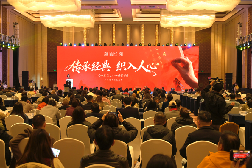 同期,非遗司还举办了2025非遗品牌推广周,非遗品牌新品发布活动作为其中的重要环节之一,我省省级非遗代表性项目大冶刺绣的“小红绣”品牌凭借深厚文化底蕴与创新表达,从全国众多非遗项目中历经层层选拔脱颖而出,入选为七大核心项目现场发布。发布会上,“小红绣”以“传承经典 织入人心”为核心理念,推出新品“一卷江山一世婚约绣品”惊艳亮相,将传统技艺与当代生活深度融合,受到现场领导、专家和各大媒体高度关注和热捧。