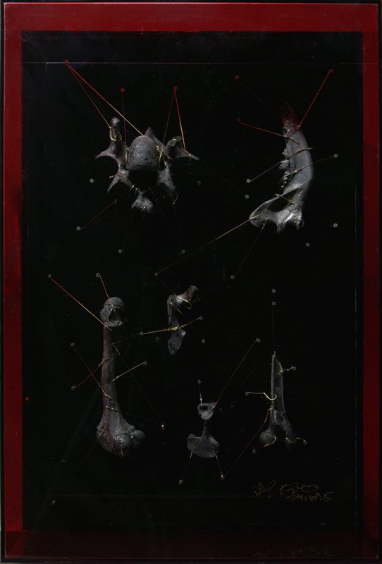 史金淞 《那边NO.5》 40×60×11cm 碳化的动物骨骼、亚克力、鱼钩、漆包线 2011年