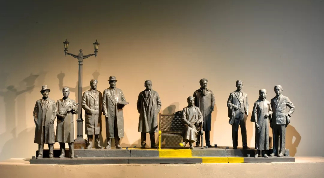 △项祎《百年面孔——留法前辈掠影记》 雕塑 树脂着色 180x120x60cm 2019年