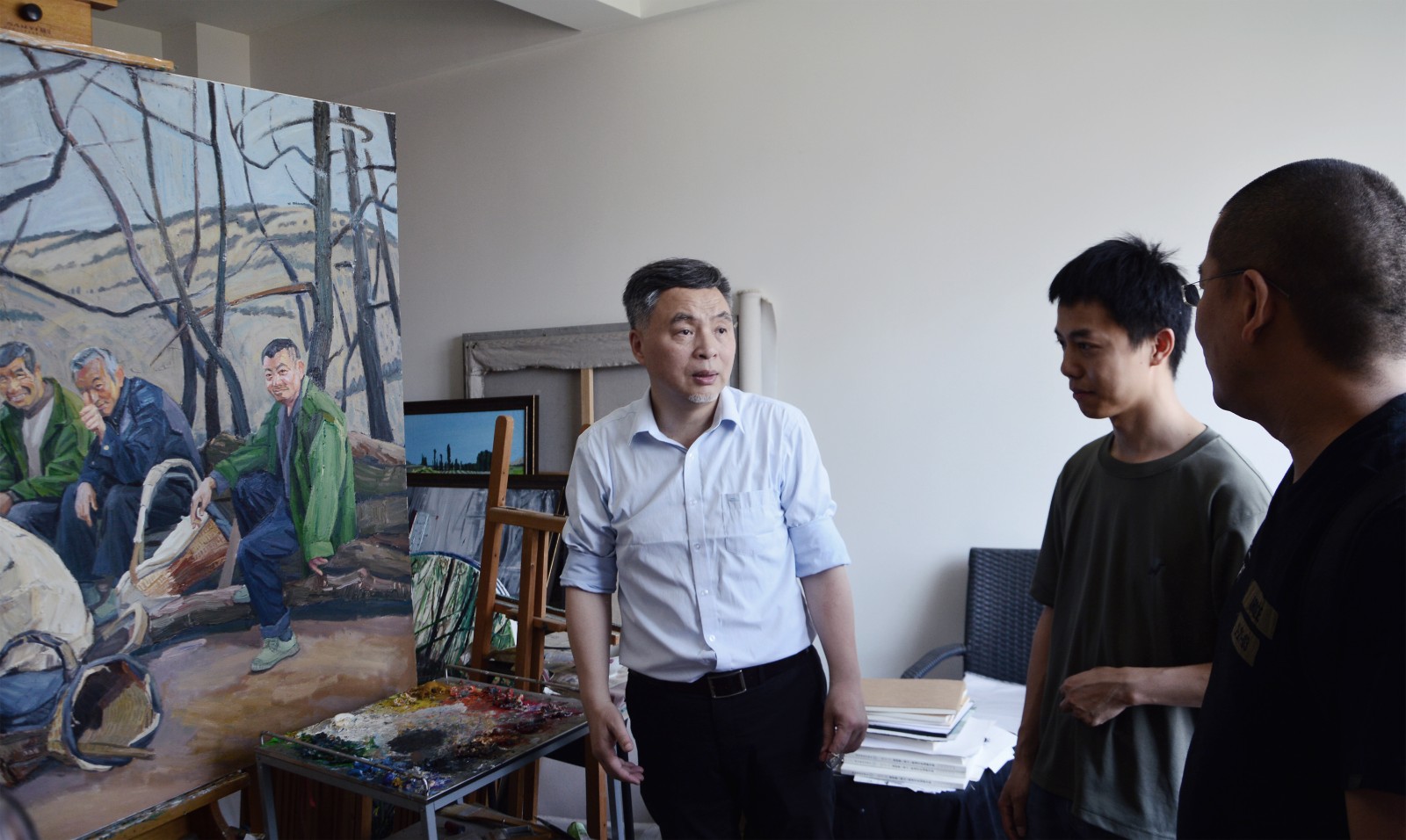 会后,院领导一行深入中国画、油画、版画与水彩、雕塑与新媒体创作室,不仅详细询问各位艺术家的创作进度安排、认真检查作品完成情况,还对艺术创作的内容、形式、题材、技法等方面逐一点评,并提出有针对性的修改意见。本次观摩检查持续了三个多小时,大家各抒己见,气氛活跃而又热烈,达到了预期效果。