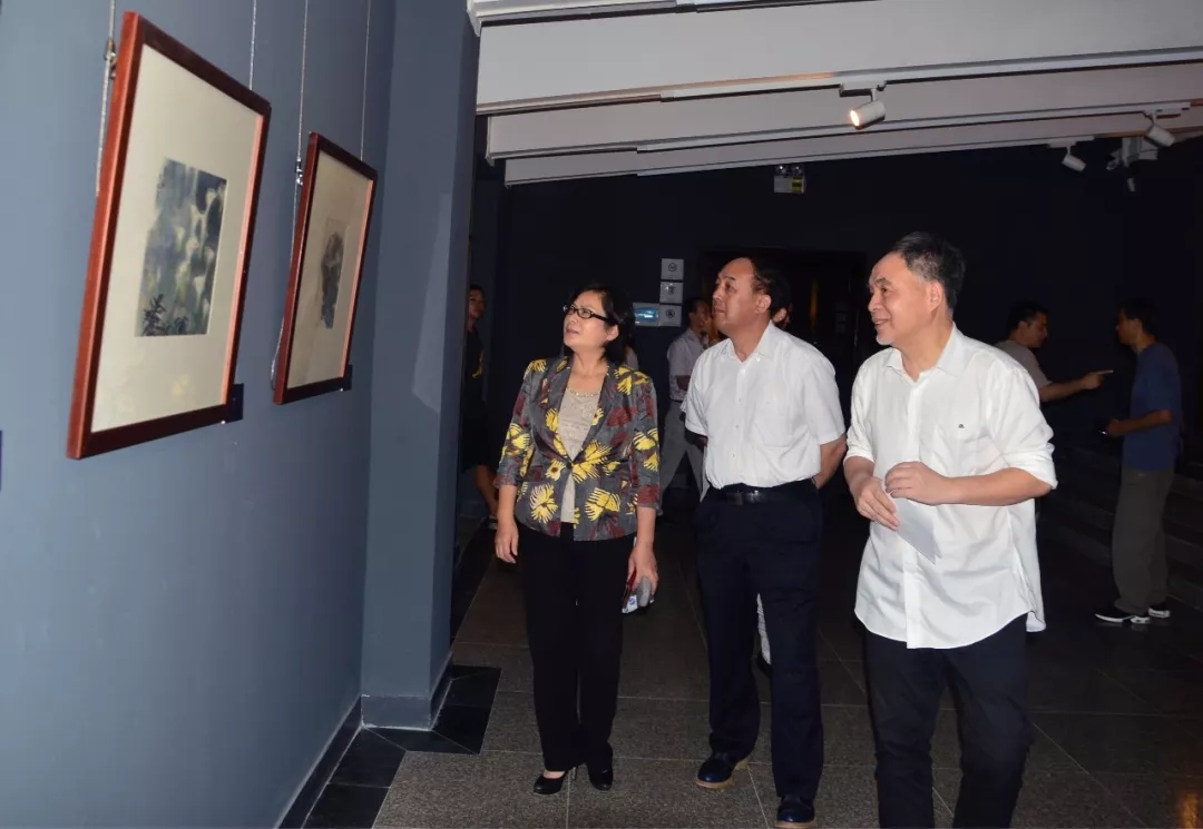△肖丰院长陪同湖北省人大常委会副主任周洪宇,湖北省文化厅党组书记、厅长雷文洁观看作品