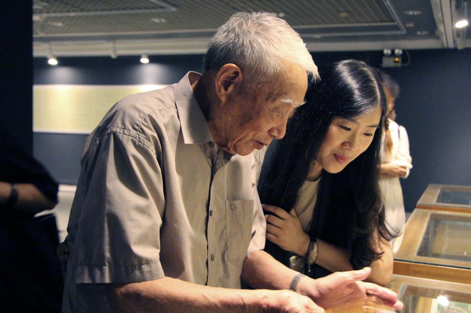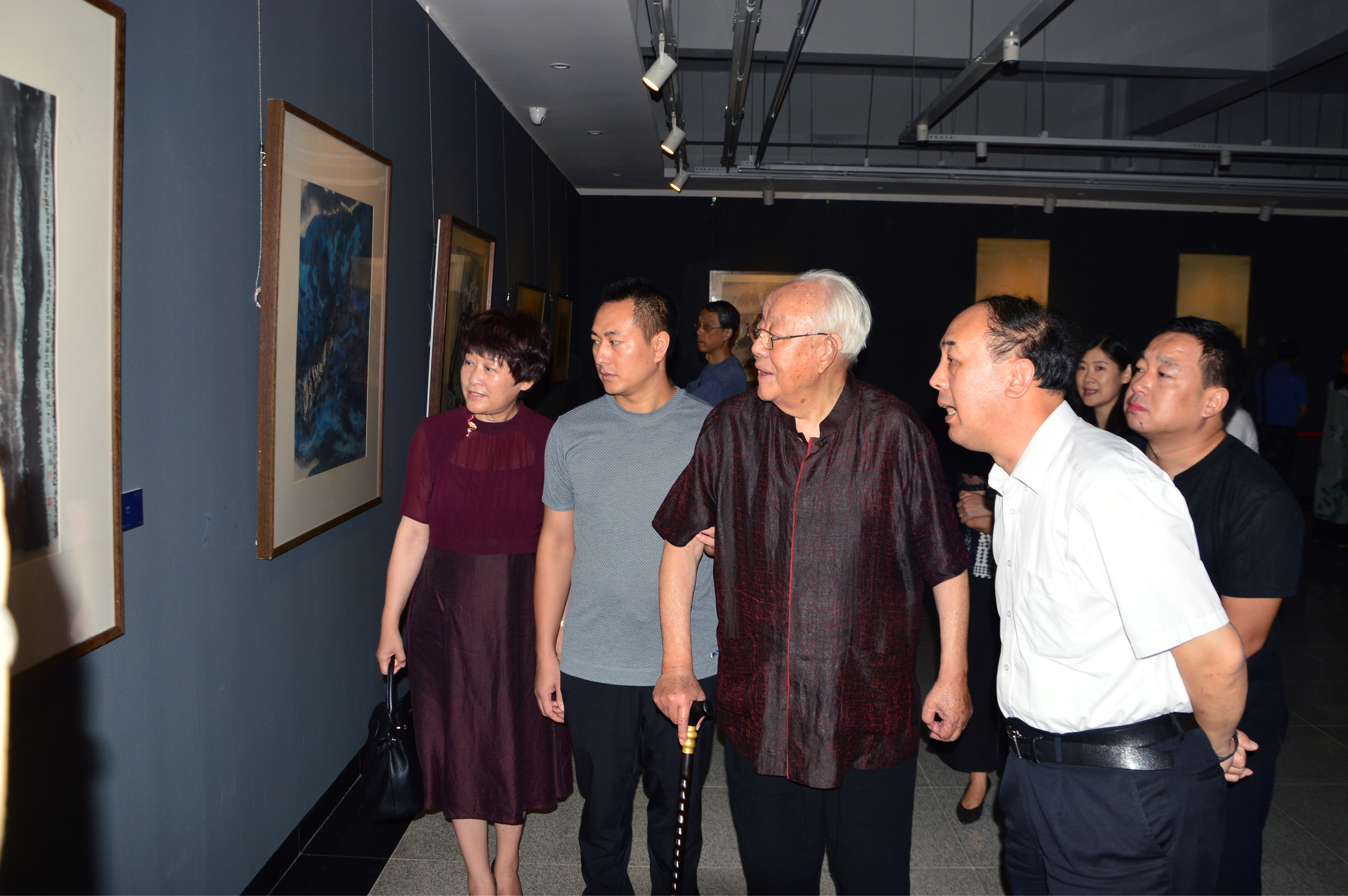 △湖北省人大常委会副主任周洪宇与著名艺术家周韶华一起观看作品