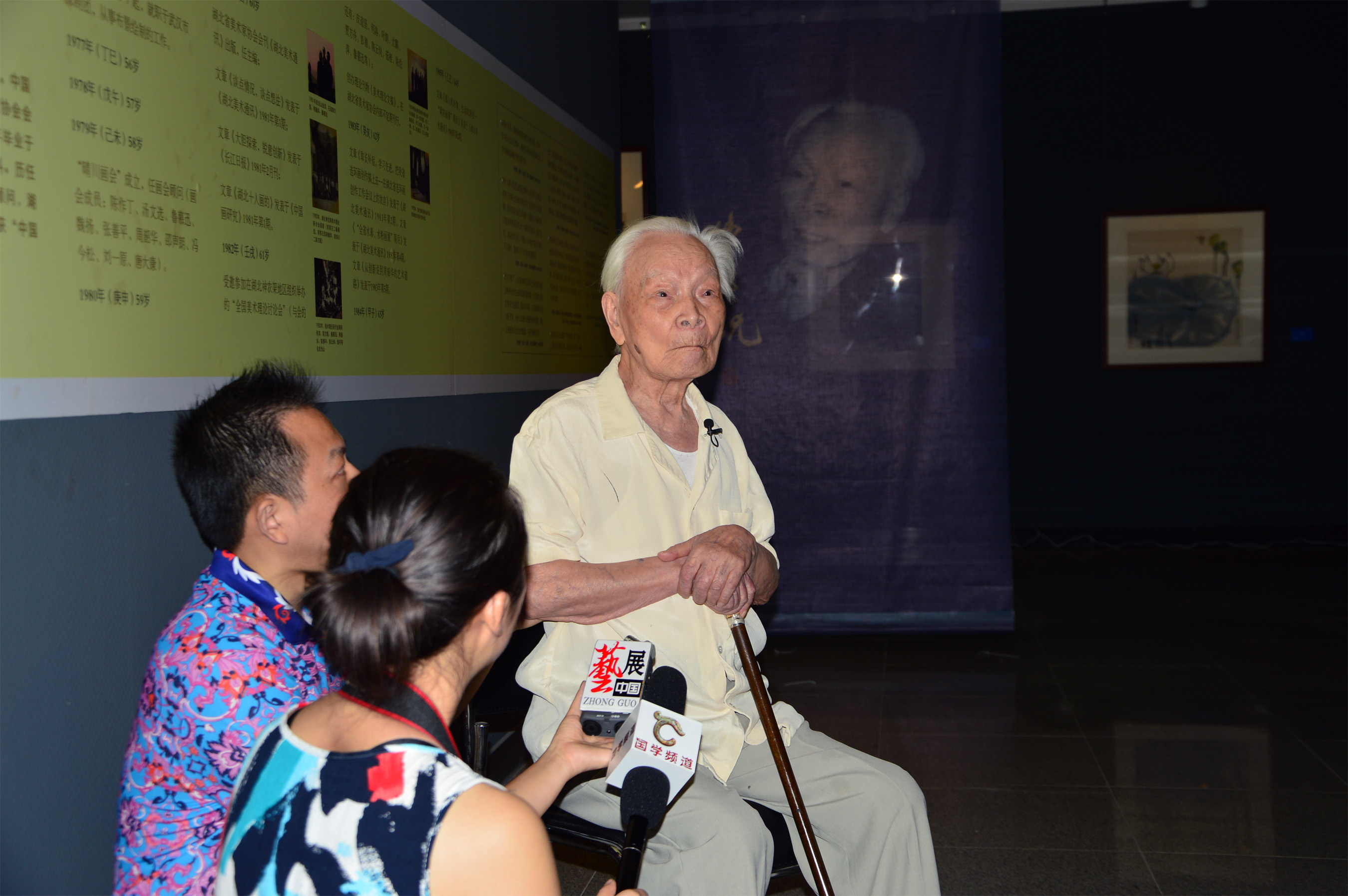 △观众正在观看著名艺术家周韶华的复原创作场景和作品