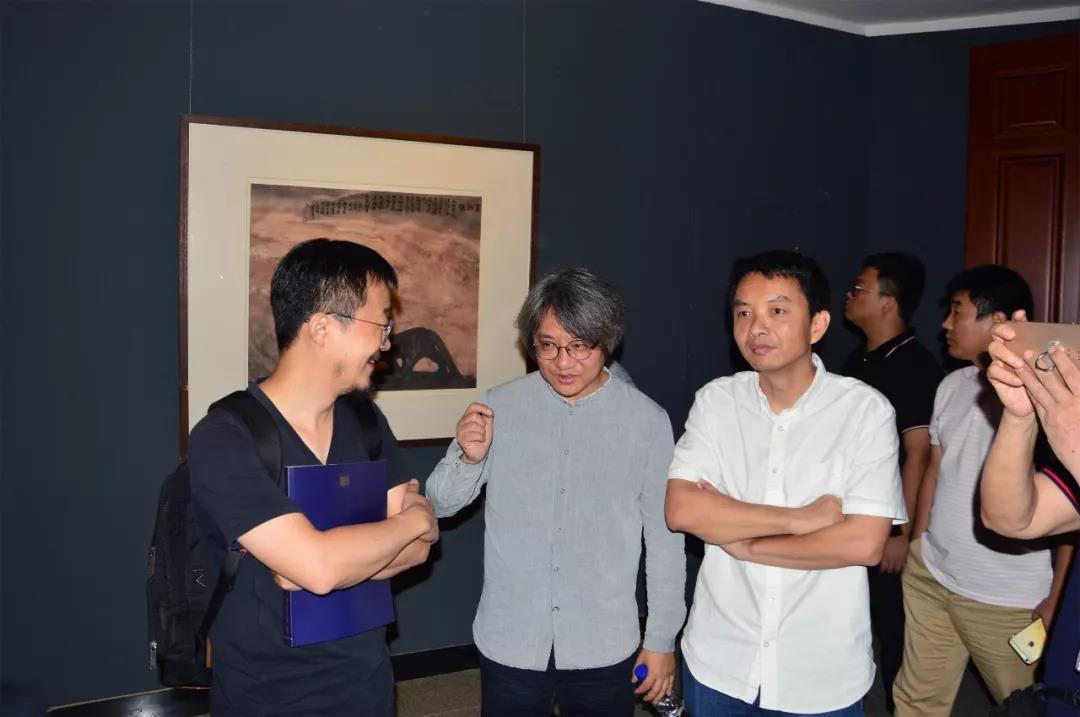 △本次展览策展人、北京画院副院长吴洪亮,中央美术学院副教授刘礼宾和广州美术学院美术馆副馆长胡斌在展览现场