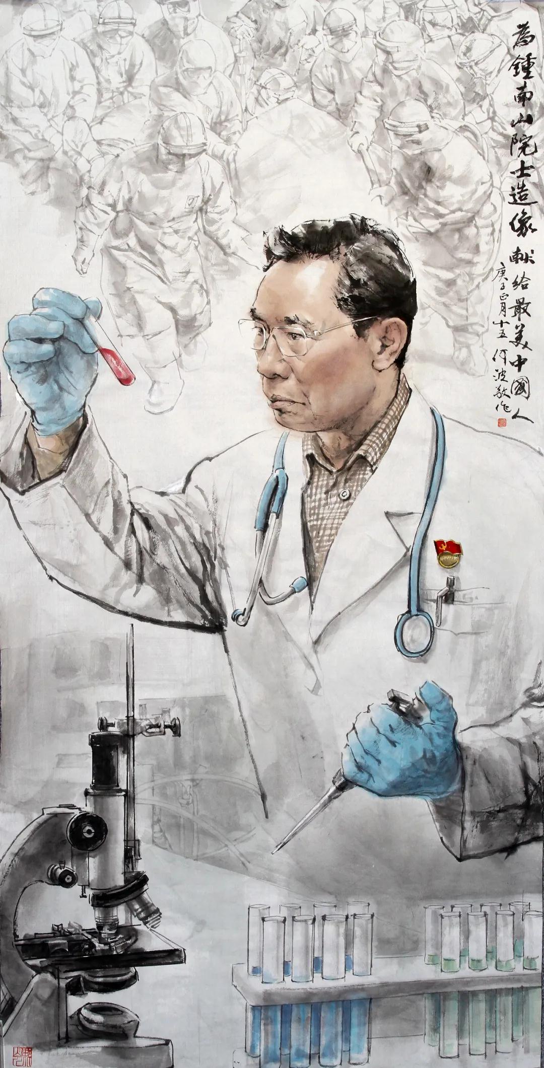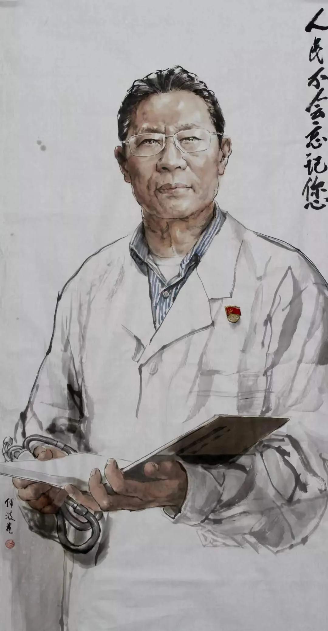 何波《人民不会忘记您》137×68cm 中国画 2020年