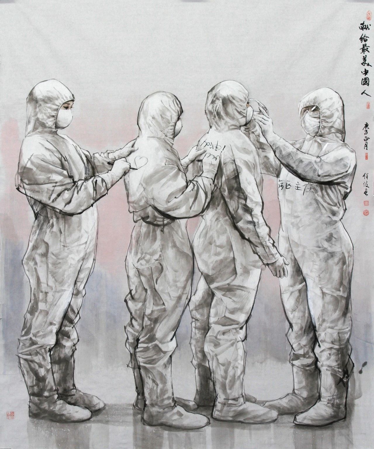 柳秀林《执子之手 共渡难关》200×190cm 纸本水墨 2020年