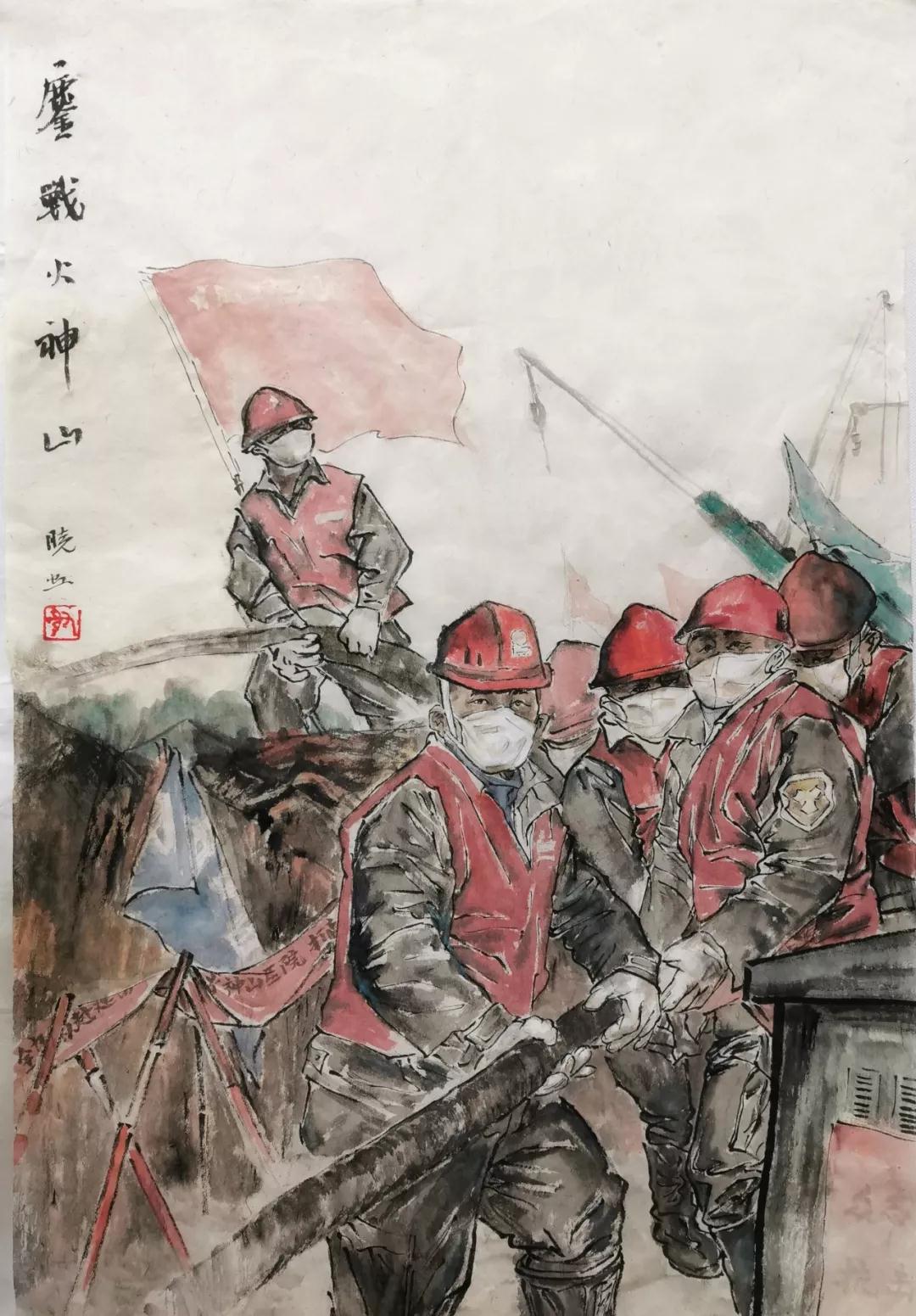 谢晓虹《鏖战火神山》75×85cm 中国画 2020年