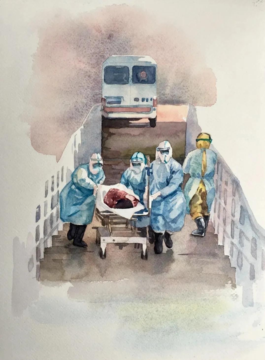 张漫《封城日记——生命通道》23x31cm 水彩 2020年