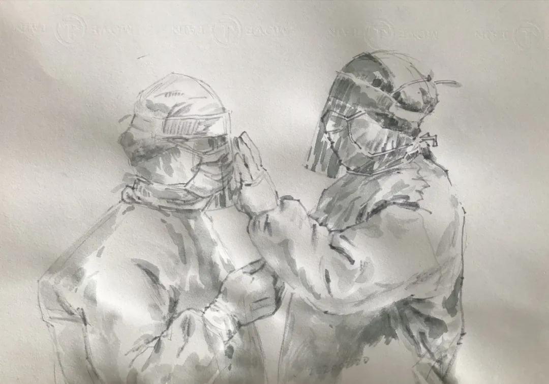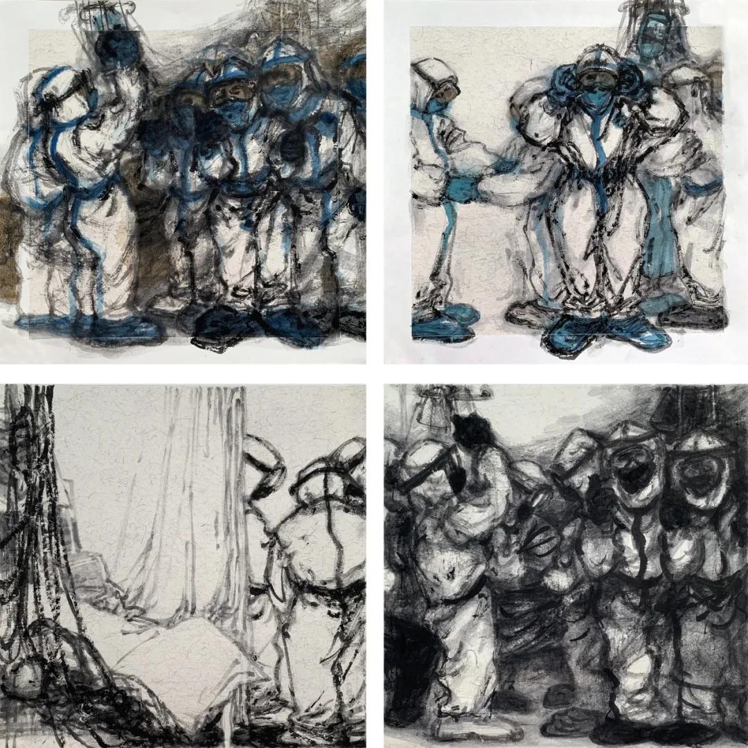 老中青三代艺术家以新时代文艺工作者的责任和担当,创作出一批礼赞英雄、鼓舞斗志的美术作品。作品形式不仅有中国画、水彩、素描、书法,还有诗词、文章等,他们用饱含深情的笔墨,致敬无私奉献的医务工作者,讴歌夜以继日的医院建设者,描绘不畏艰险的逆行者,刻画病床上坚强向上的老者和阅读者,为时代、为英雄、为人民鼓呼!