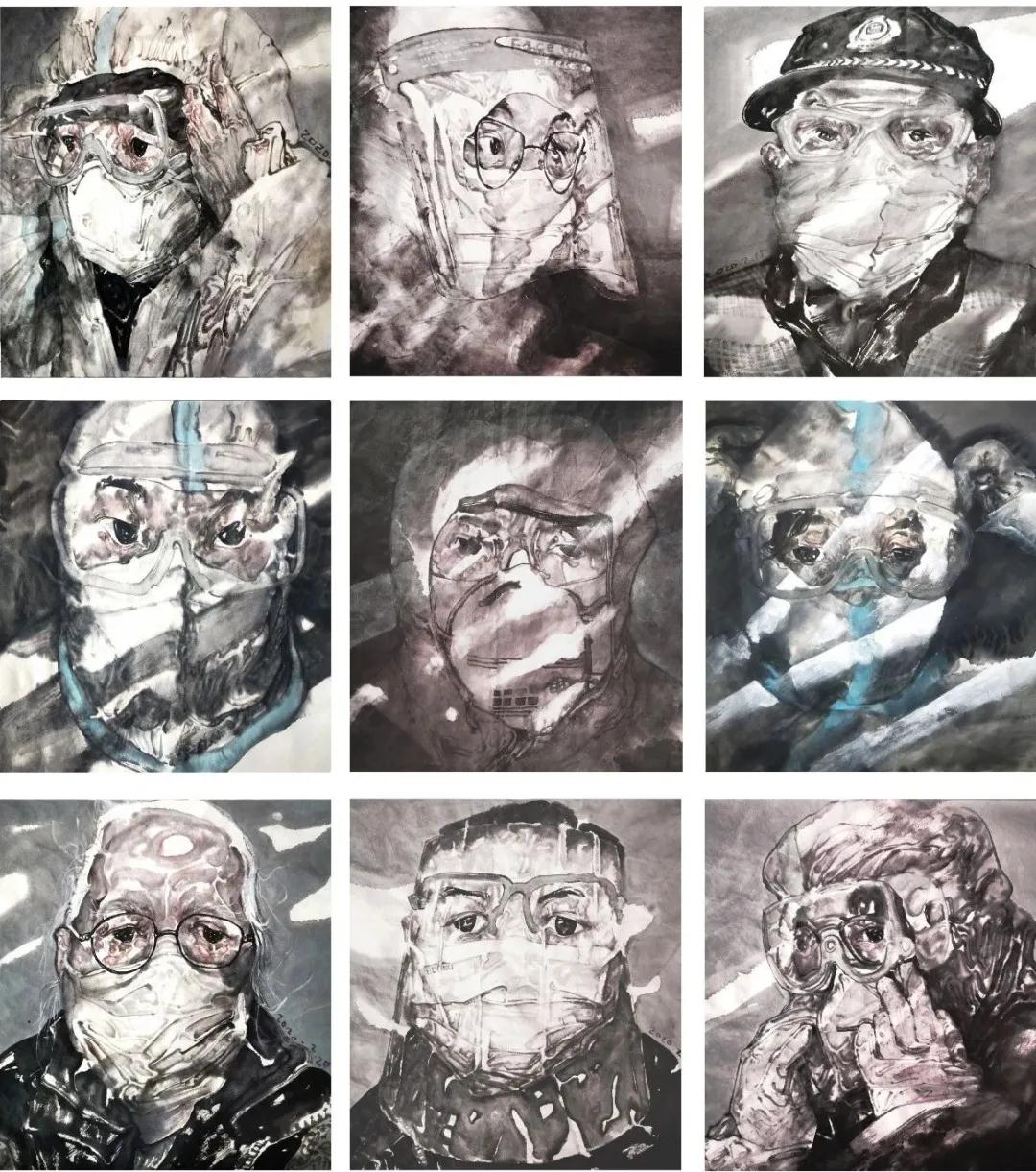 柳秀林《日记·面孔》34×34cm×9 纸本水墨 2020年