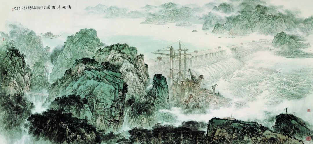 施江城 张军 高峡平湖图 中国画 300×650cm 2009年