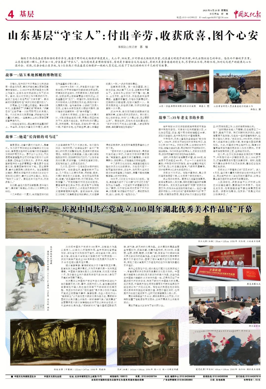 6月,《中国文化报》报道由我院承办的“壮丽航程——庆祝中国共产党成立100周年湖北优秀美术作品展”。