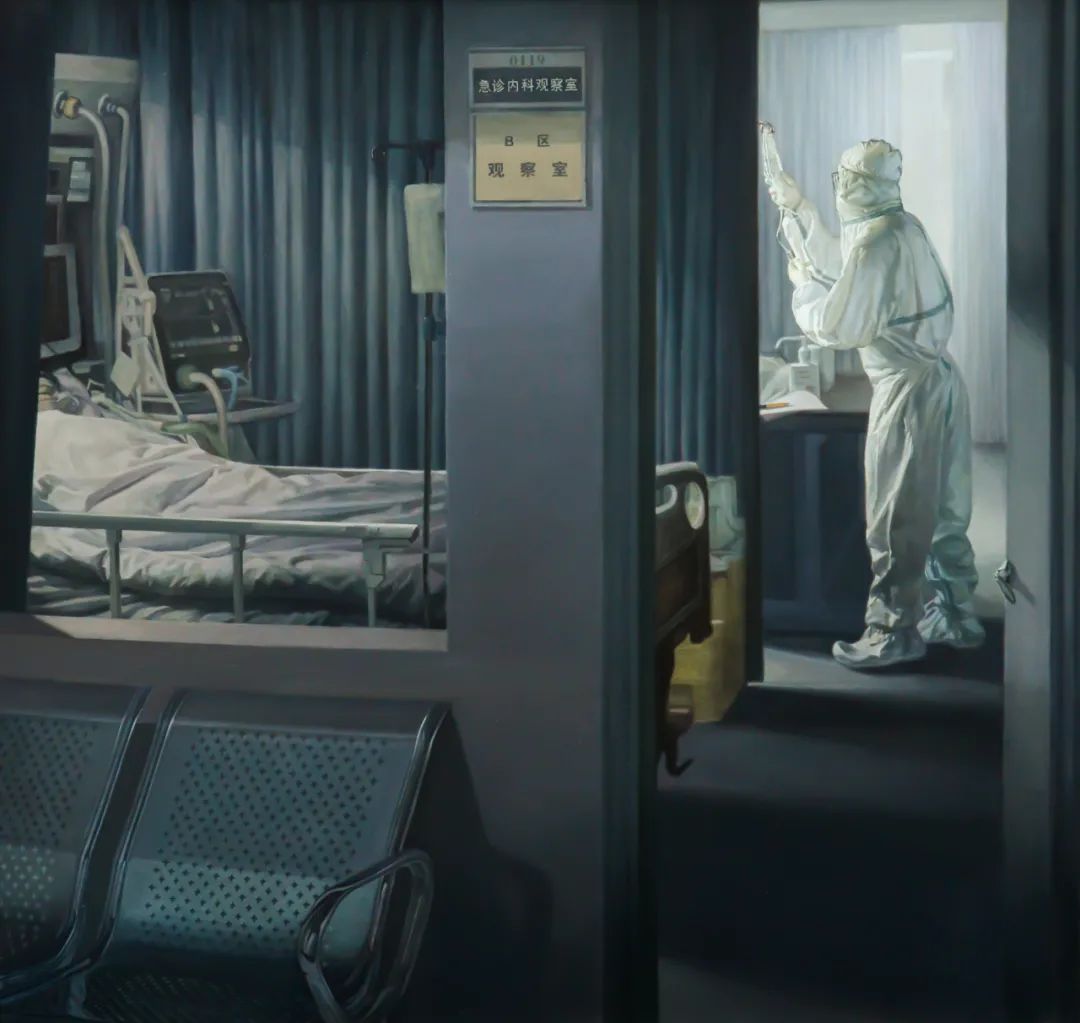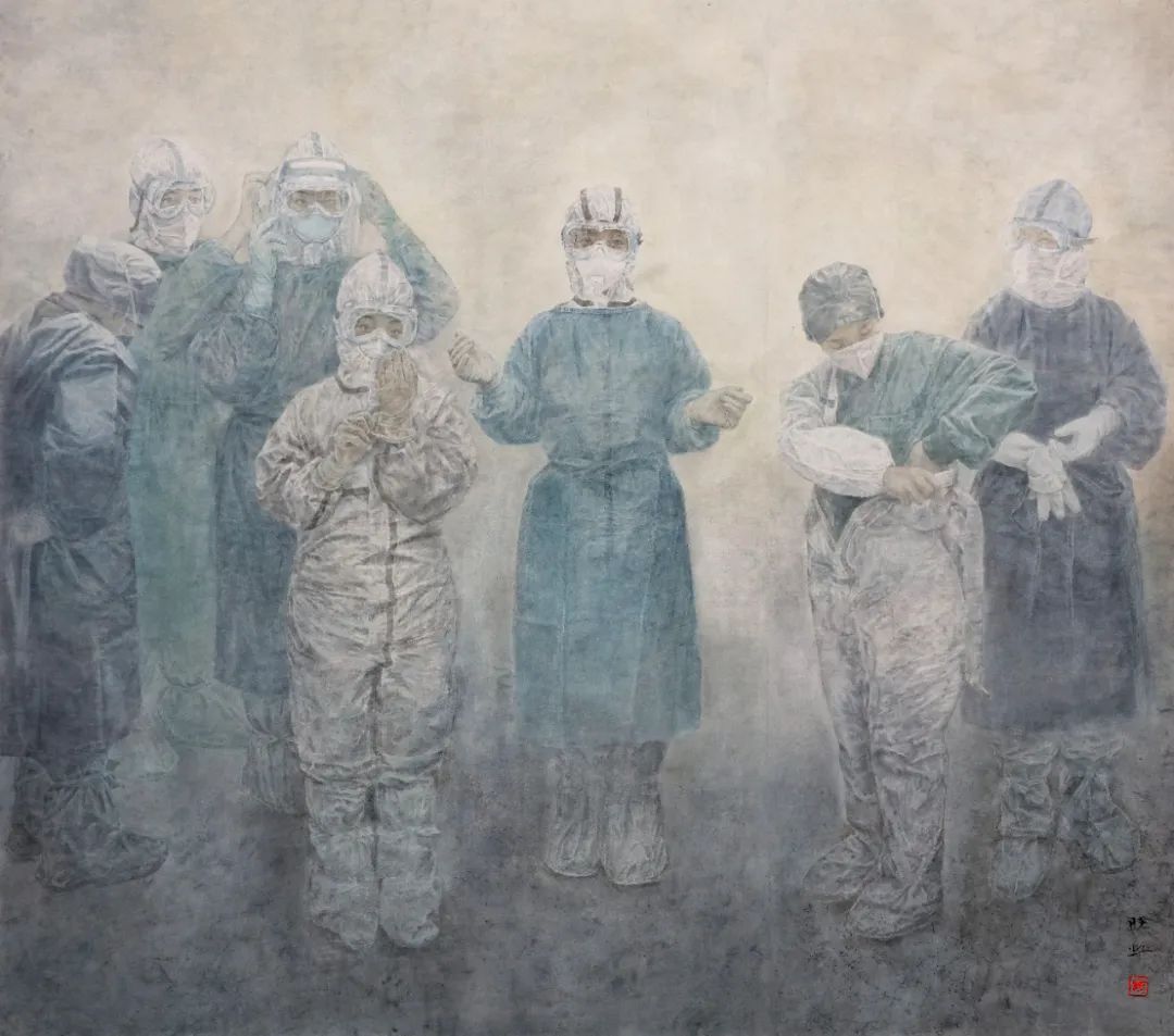 肖丰 吴青 穿过黑暗的那道光——武汉庚子年春 布面油画190×180cm 2020年