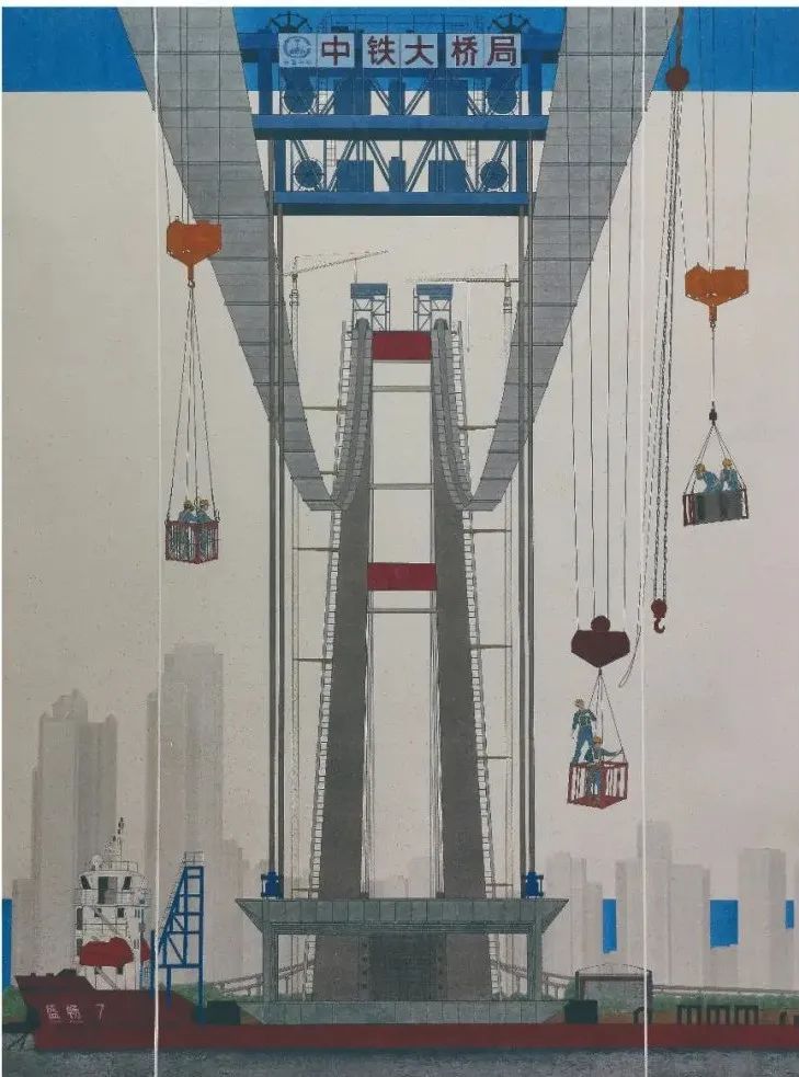 万国龙 武汉长江大桥·筑梦杨泗港 中国画 240×180cm 2021年