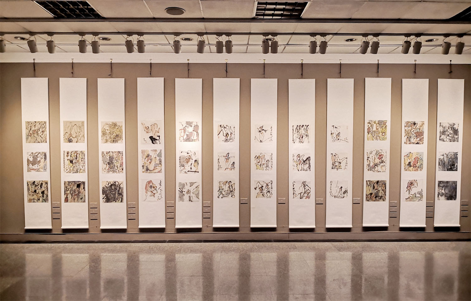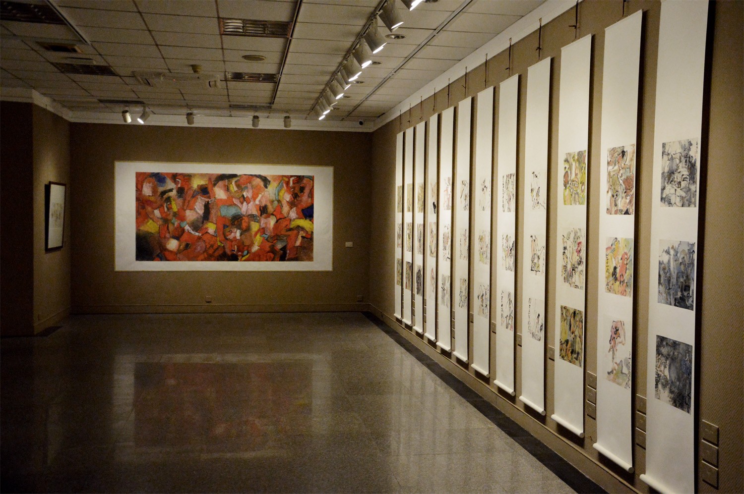 本次展览学术主持彭德称钟孺乾的创作走的是一条以不变应万变的艺术之路。艺术家从小练习书法,很早接触油画,对水、墨、色在宣纸上勾勒、渲染、渗化的视觉韵味十分敏感。在解决了绘画中的技术阻碍后,他融合传统视觉形态与现代视觉经验,用富有文人审美情趣的笔墨探讨隐含在民俗和大众文化背后的冲动与激情。近年来,钟孺乾的绘画日益向苍莽、荒率和空蒙、灵动的水色意趣回归,彰显出中国传统人生境界与审美境界的深远影响。