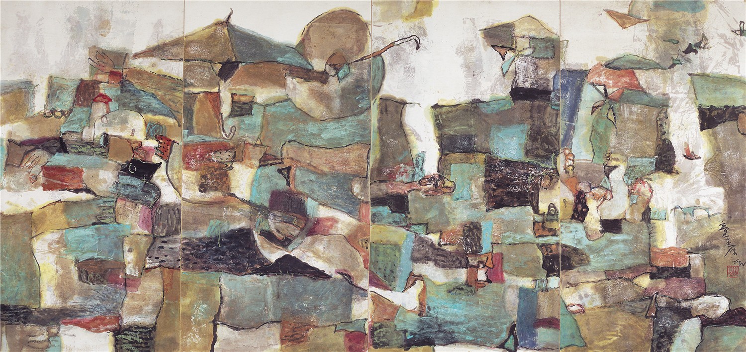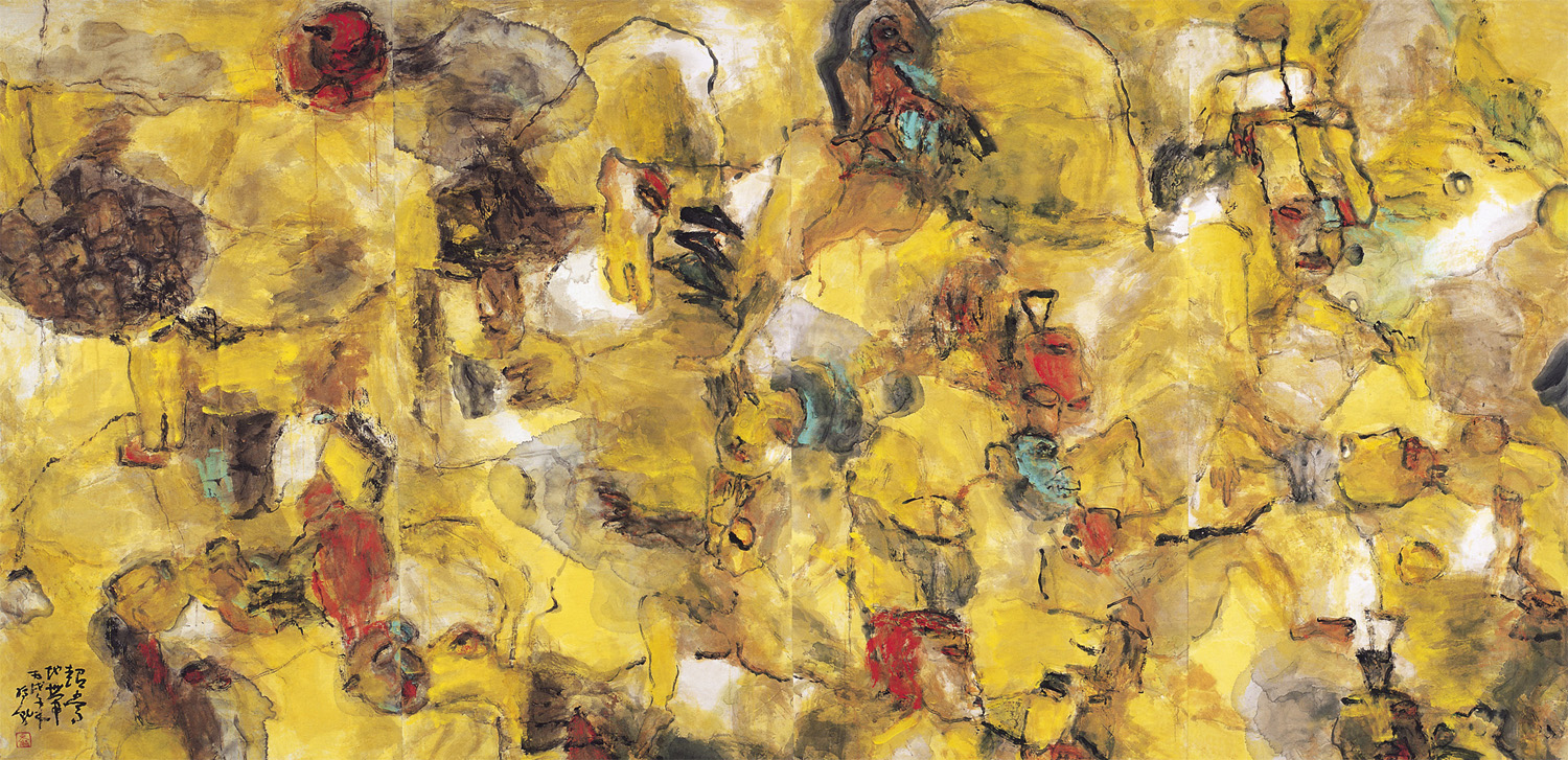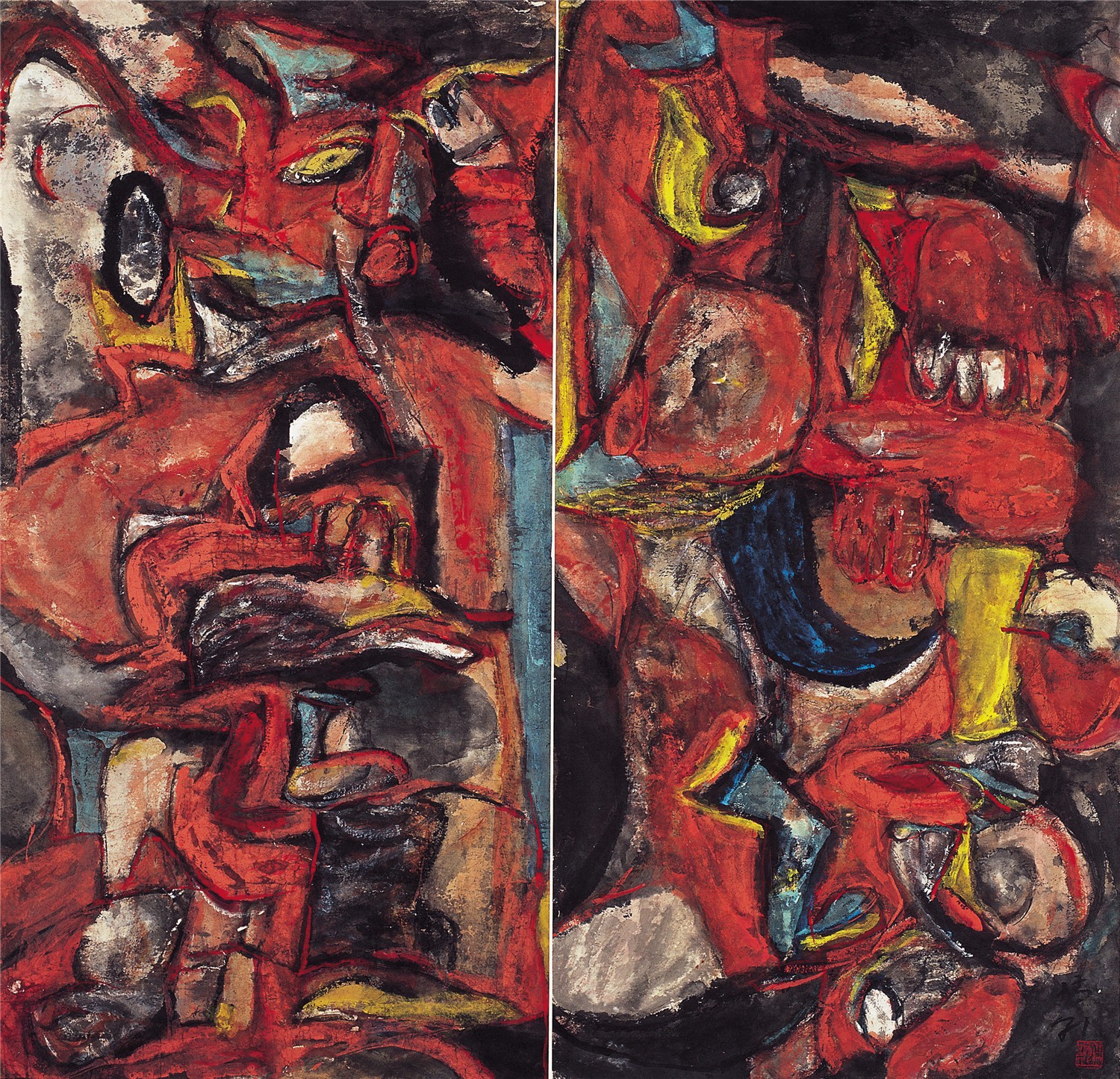 《颠倒门神》纸本设色 136x136cmx2 1997年