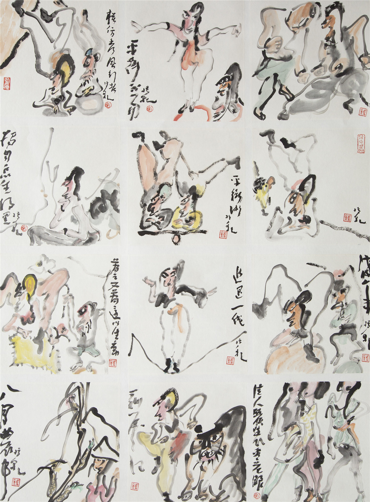 《舞台札记》纸本水墨 34X34CM(12联)2019年