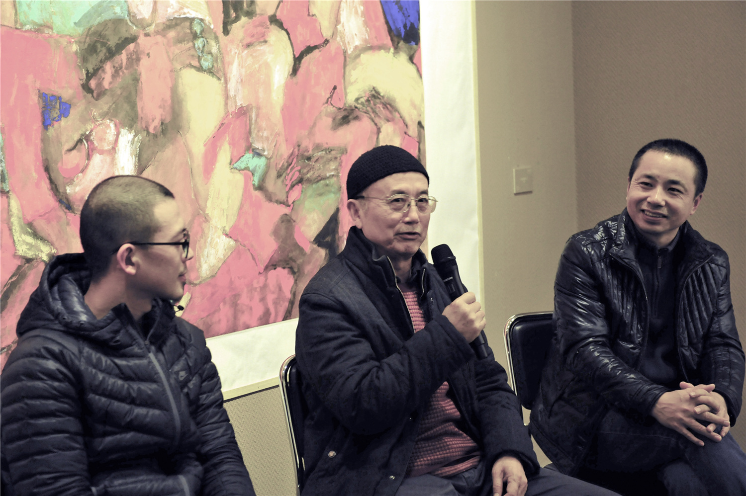 参展艺术家、中国画学会理事、中南民族大学美术学院原院长钟孺乾(中)发言