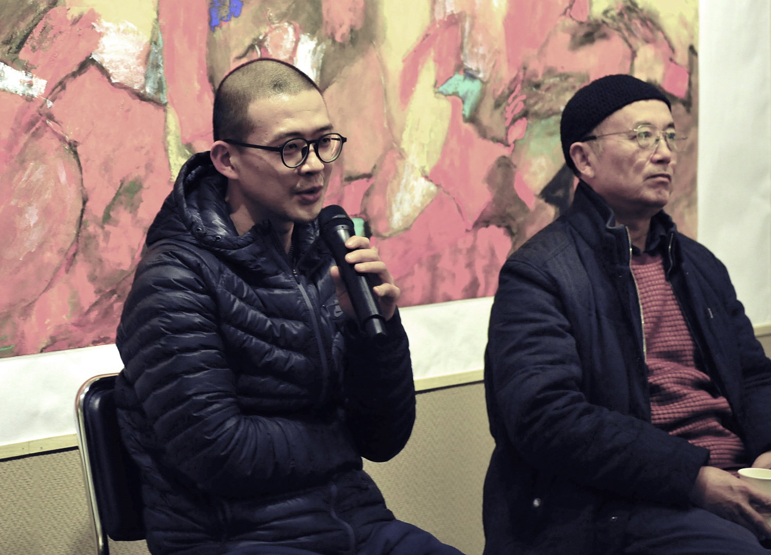 武汉理工大学艺术与设计学院2017级博士李俊(左)发言