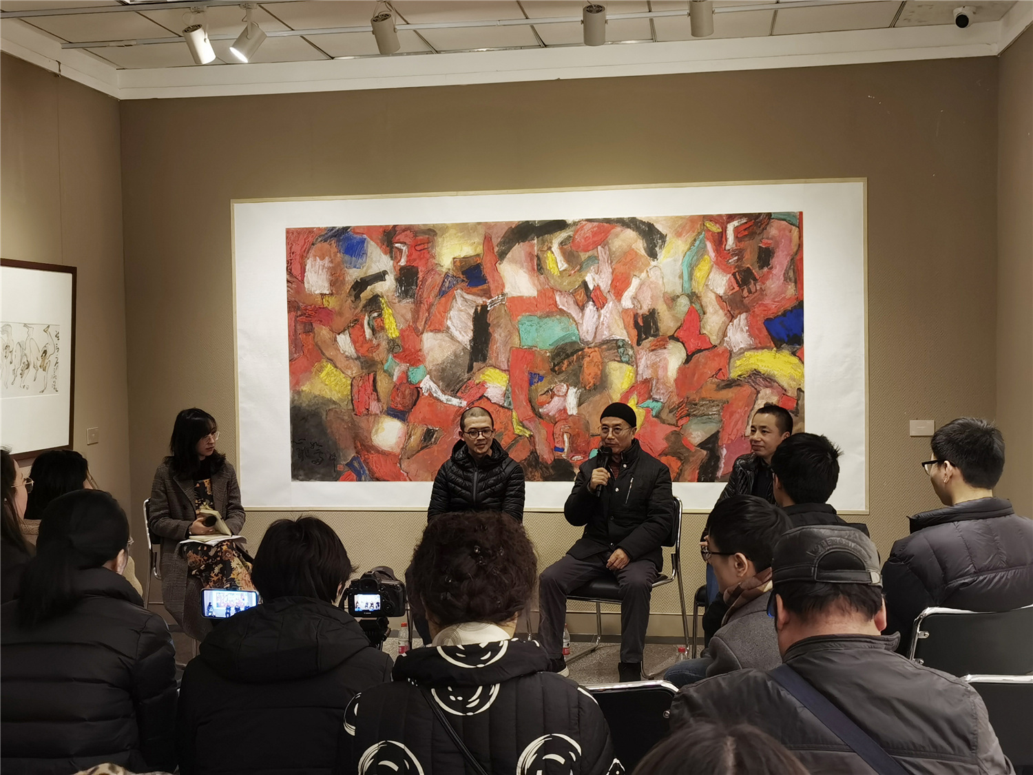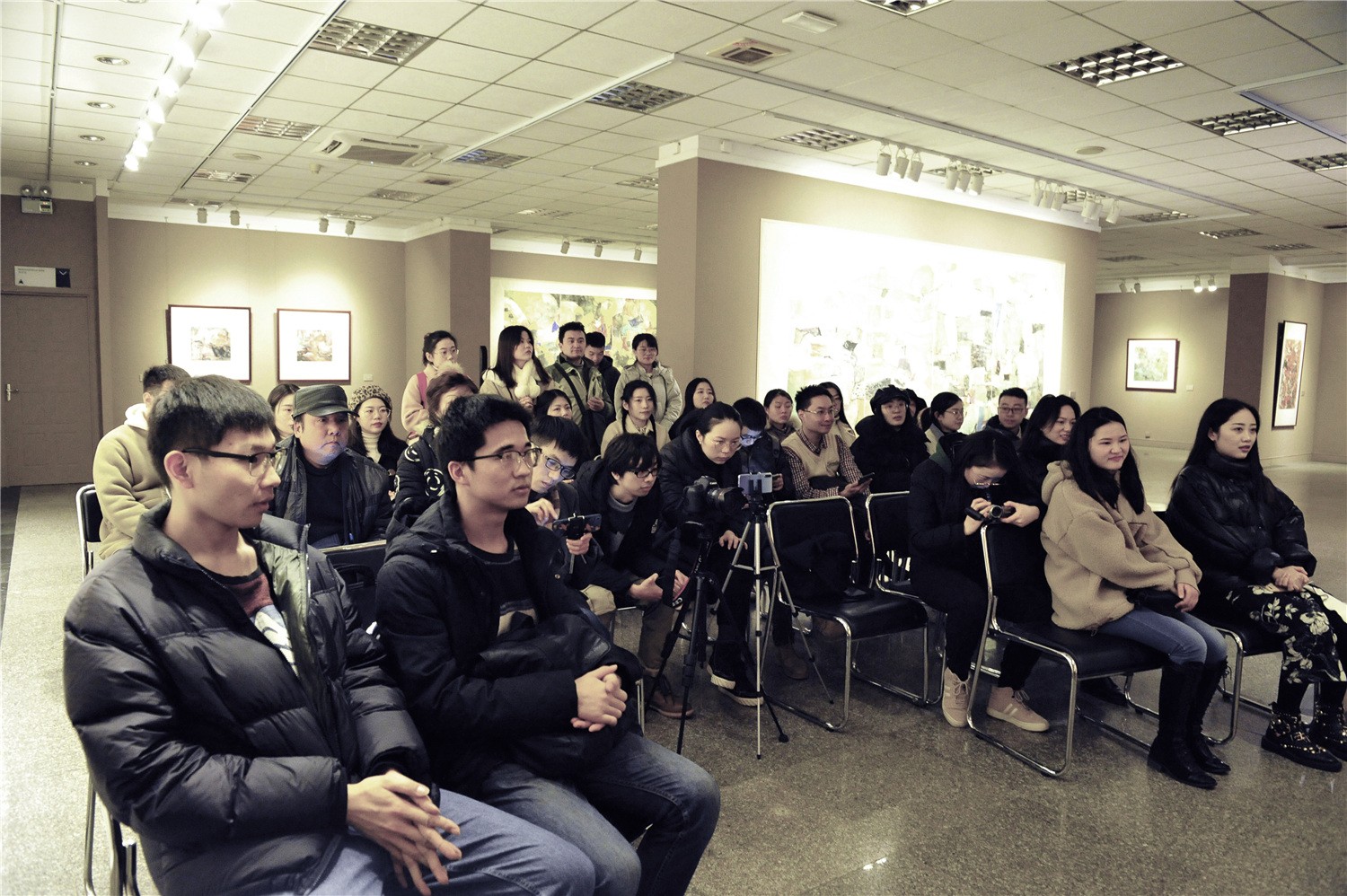 12月24日,“化古开今——1988~2019湖北群体艺术研究展(钟孺乾、傅中望、严善錞、肖丰)”公共教育活动“画出点意思”创作对话在湖北省美术院美术馆举行。参展艺术家、中国画学会理事、中南民族大学美术学院原院长钟孺乾,本次展览策展人方志凌,武汉理工大学艺术与设计学院2017级博士李俊主讲,活动由策展助理、院美术馆汪唯楚主持,来自华中师范大学、中南民族大学的30多名艺术学子参加。本次活动在雅昌艺术网全程直播。