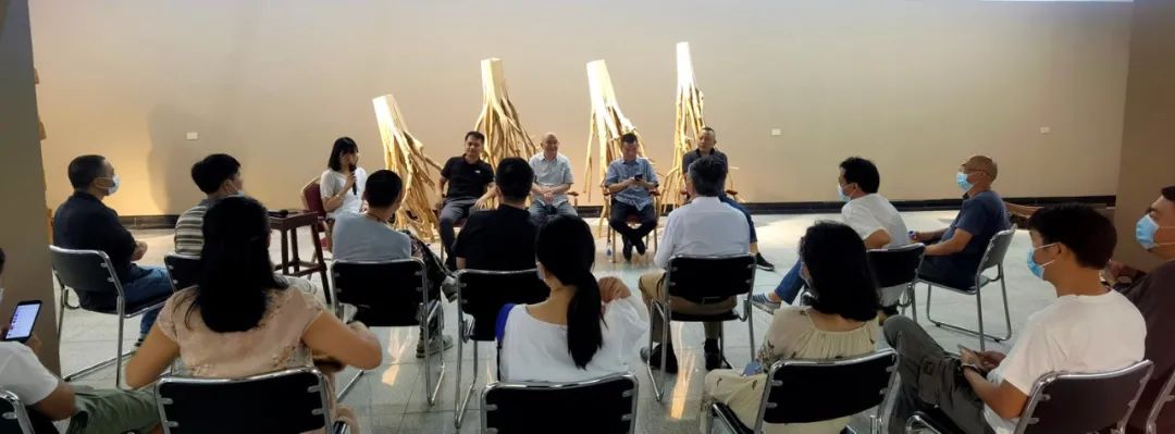 傅中望分享了其30余年来艺术创作的经历和思考,他讲到:“我们应该站在更高的层面上,不论从事管理还是从事创作,怎么在个体和整体的意义上去嫁接,把个人化的思考和社会整体的价值观连接,这才是问题所在。有了这个思考,必然会去找到某种相关的视觉语言和形态去表达。”他认为,自己的创作从“具体的人物的雕塑、到金属焊接、到榫卯结构、再到近几年在榫卯结构中去强化,都是整个的一条线或者说一种逻辑,这个逻辑符合个人的生活经历。”