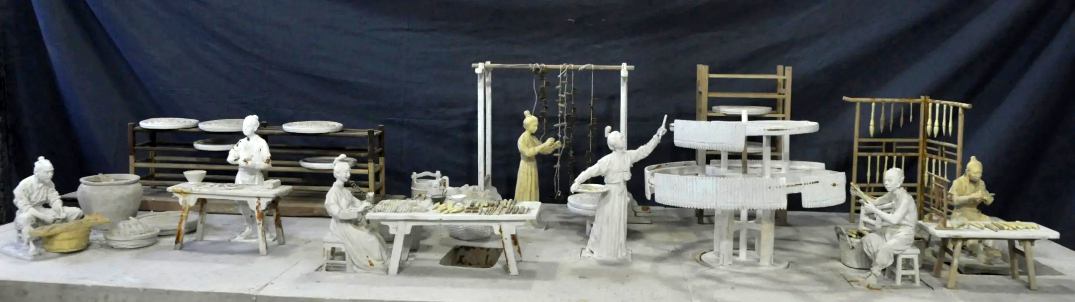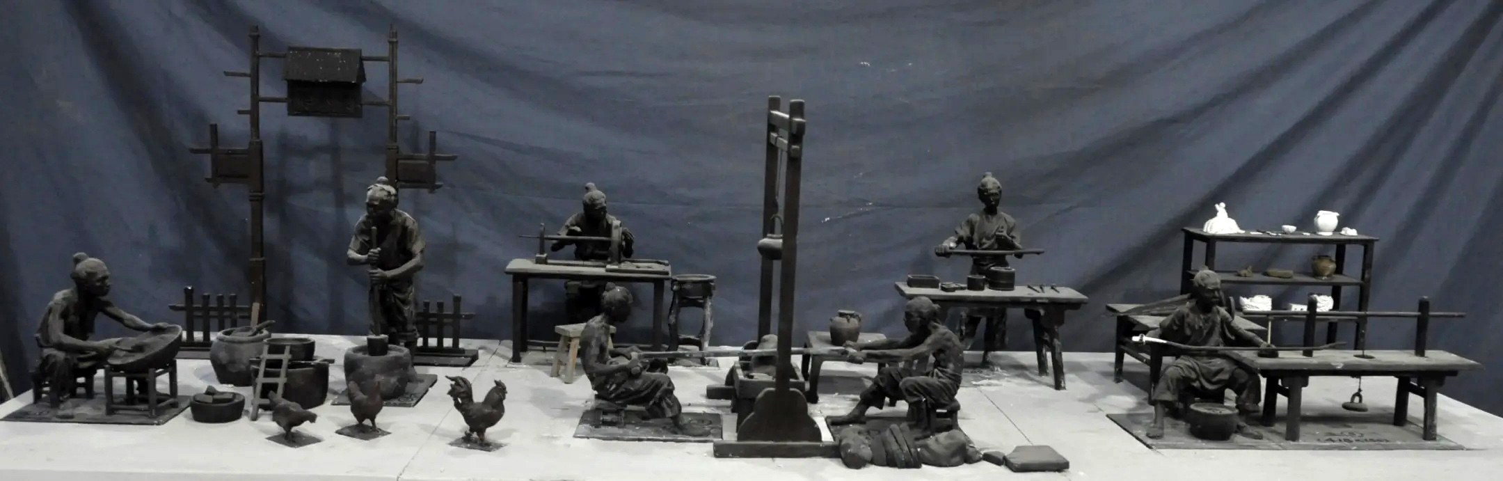 ■“艺术为人民服务”,是我艺术创作不懈追求的宗旨。 疫情期间在家独自创作中华360行系列之唐36行。特殊时期,没有了往日嘈杂的社交往来,却难得有了一段安静完整、不间断的工作时间,艺术家需要可以安静思考和潜心创作的时光,有自主性和连续性的工作节奏。疫情让这一切回归到一个艺术家应有的面对创作的正常状态。连续的不受外界打扰的工作可以让我做更多、更深入的尝试与探索。疫情解封后我又开始在工作室继续雕塑创作。在潜心创作中,我深感中华360行是为人们生活得更加美好与和平而存在的。这数千年的存在积淀成中华民族热爱生活、热爱和平的文化传统和文化心理。我要借助中华360行系列雕塑作品,唤醒人们对传统文化的记忆,宣传推广非物质文化遗产,祈愿全人类生活得更加美好、全世界永久和平。